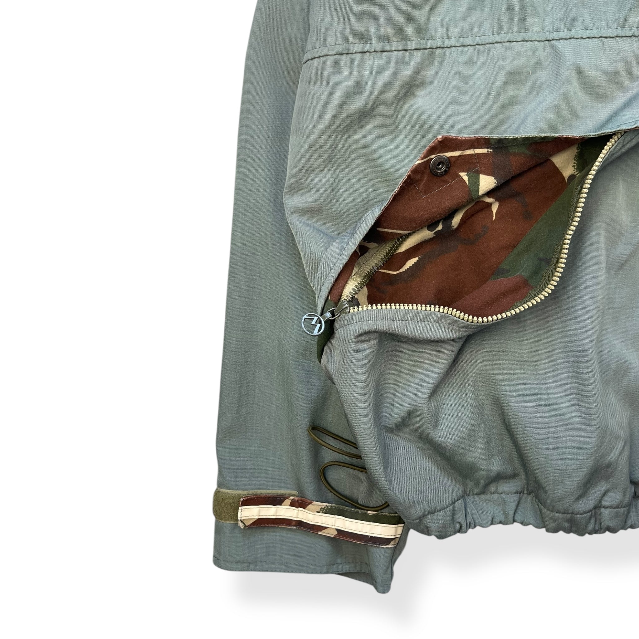 Durable performance material, abrasion/tear resistant & waterproof whilst remaining breathable. Large front pockets with camouflage interiors, signature two-tone zipper teeth & branded zip pulls. Velcro stash pocket on the sleeve, adjustable velcro cuffs, spacious, peaked hood with elasticated hood & waist hem. 3M Scotchlite reflective neck tag.