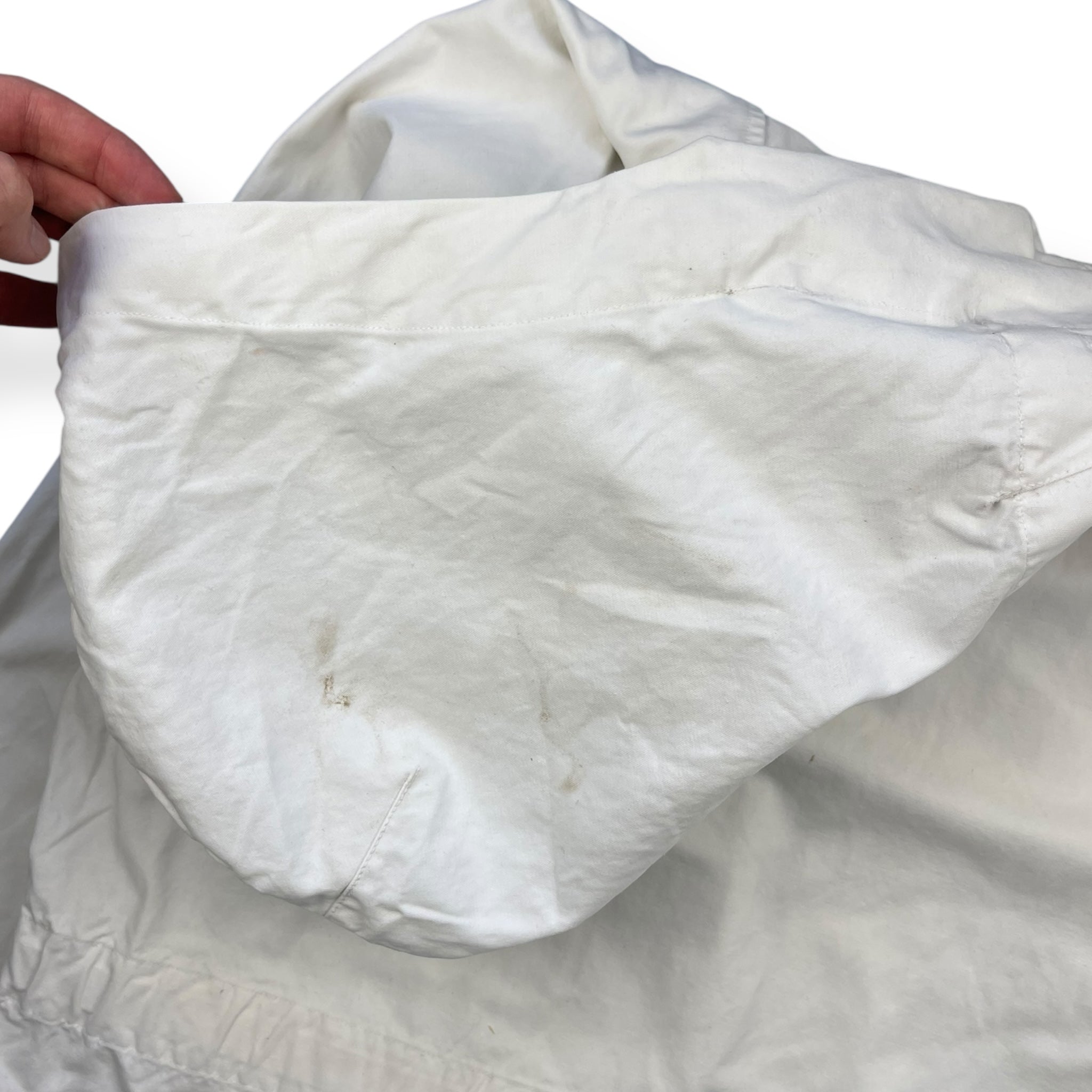Durable, white, canvas material. Full zip main body opening, spacious hood, buttoned pockets either side of the body & subtle SI Denims spellout on the sleeve.