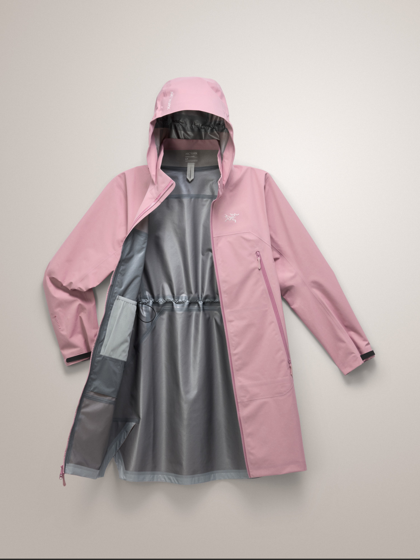 - Body: 80d 3L GORE-TEX ePE with C-KNIT™ backer, plain weave recycled nylon, FC0 DWR - 100% Nylon with ePE and PU Membrane