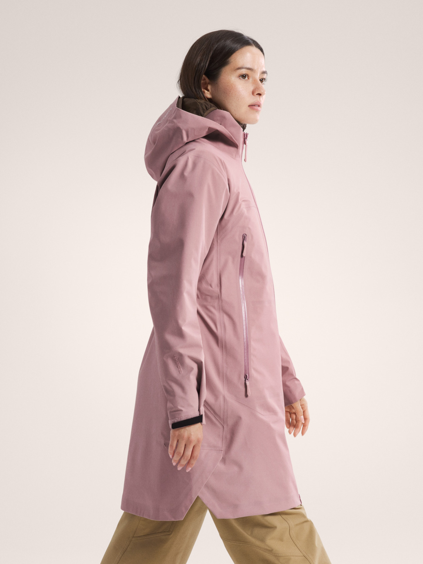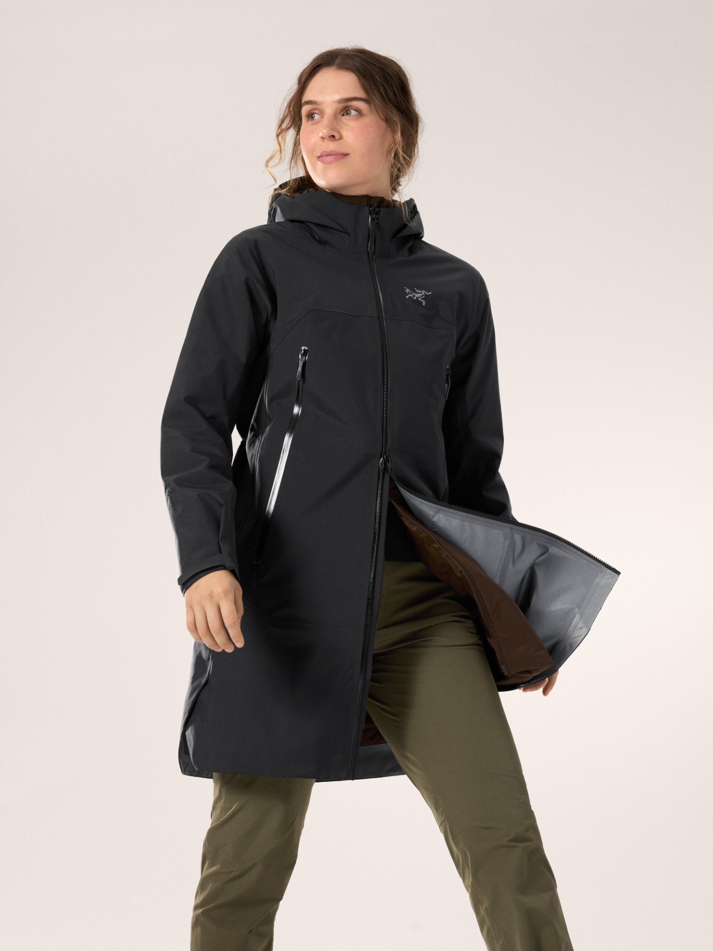 The Beta Coat brings all-mountain protection with a lighter footprint and longer length. The PFAS-free GORE-TEX ePE fabric sheds wind, rain, and snow. Its recycled C-KNIT backer improves breathability, and the durable 80D face is made with 100% recycled nylon. Its length rides comfortably under a pack's hipbelt and aligns with longer midlayers, an adjustable DropHood provides coverage with an integrated collar to protect the neck, and the two-way front zipper gives you freedom of stride.