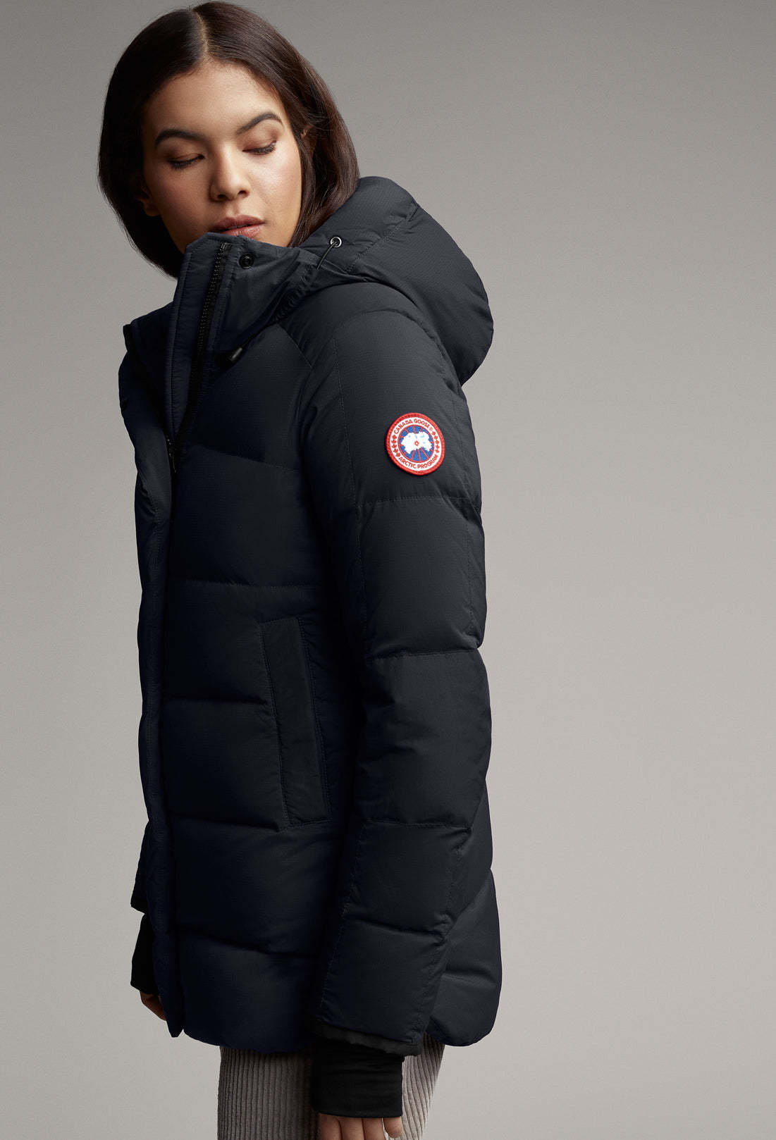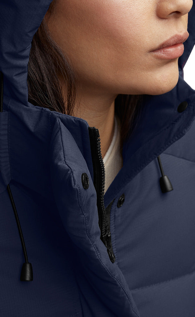 - Le capuchon garni de duvet s’ajuste de deux façons afin de vous garder au chaud et de vous protéger contre les éléments. Des bandes doubles réfléchissantes emblématiques au dos permettent d’être plus visible lorsqu’il fait sombre.