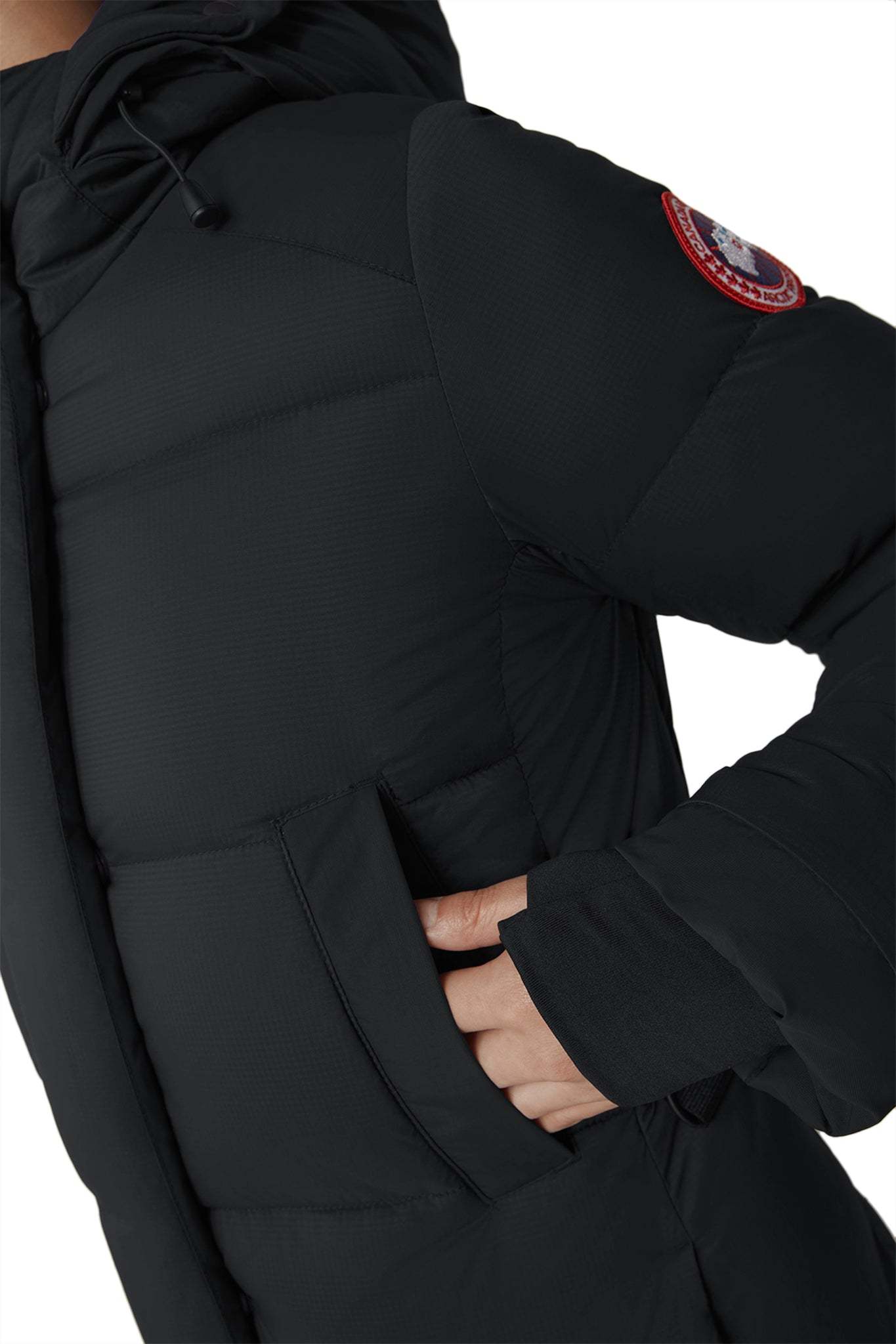 - Recessed Power Stretch® cuffs with thumbhole construction add comfort and lock in heat