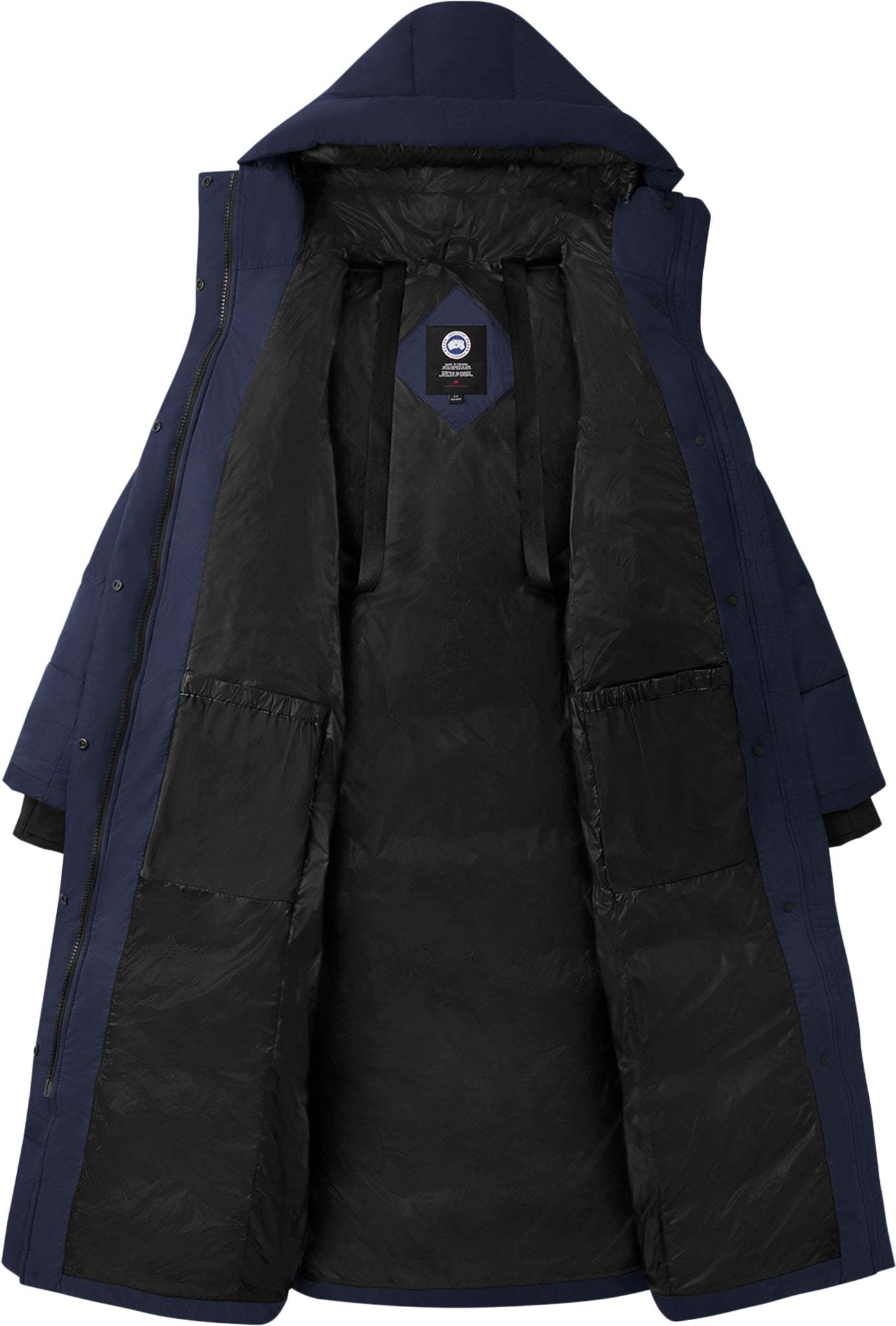 - Quatre poches extérieures : deux poches réchauffe-mains doublées de molleton avec fermeture à boutons-pression dissimulée et deux poches inférieures avec fermeture éclair.