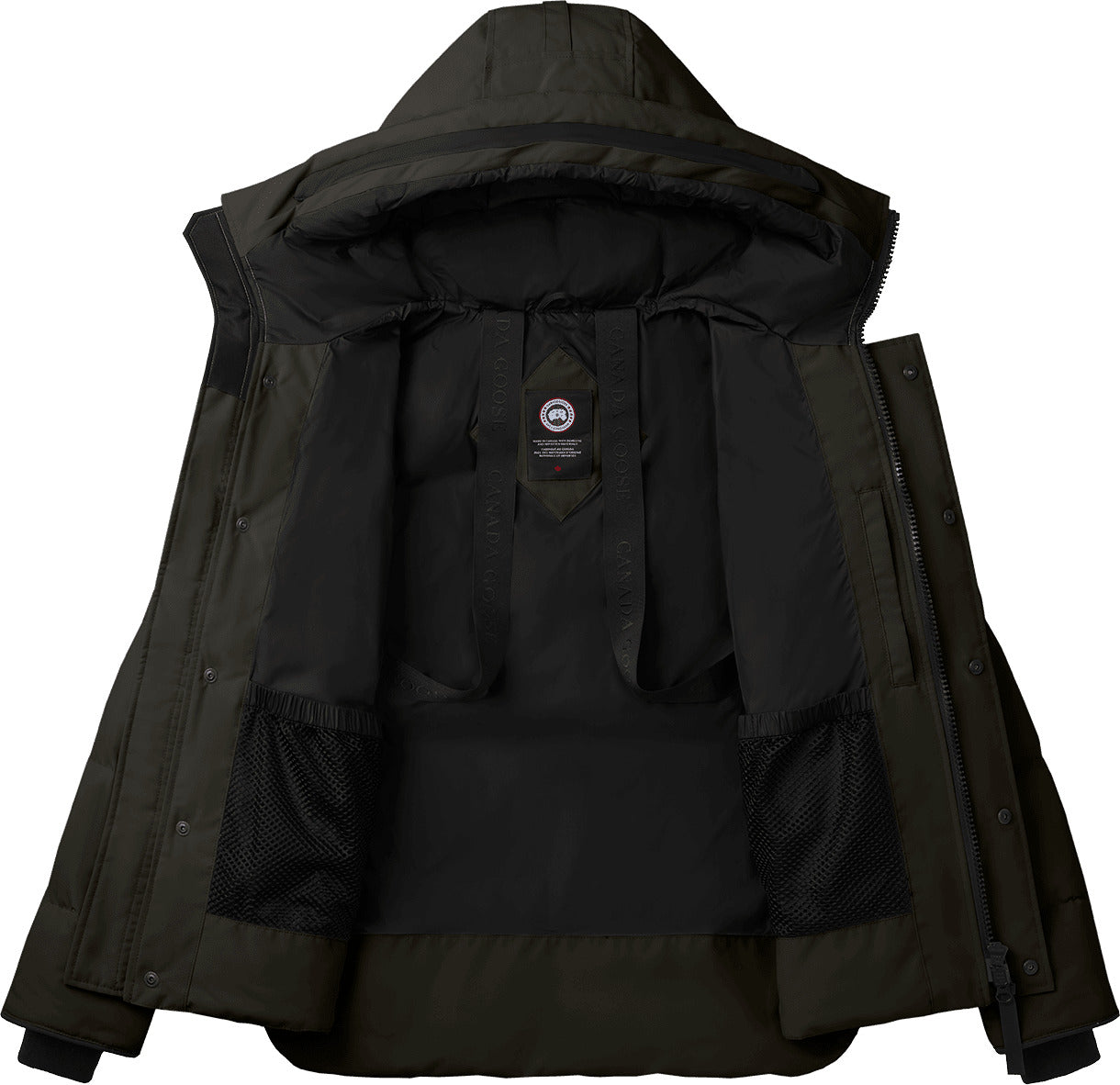 • Le capuchon est doté d’un protège-fermeture éclair amovible, offrant la possibilité de changer sa garniture pour une allure personnalisée et une protection accrue (ce parka n’est pas compatible avec les garnitures du capuchon Heritage)