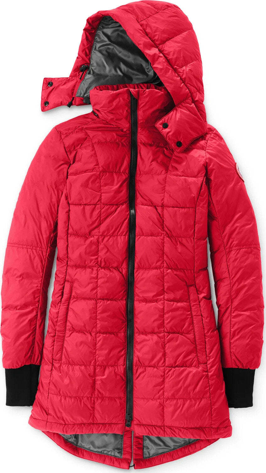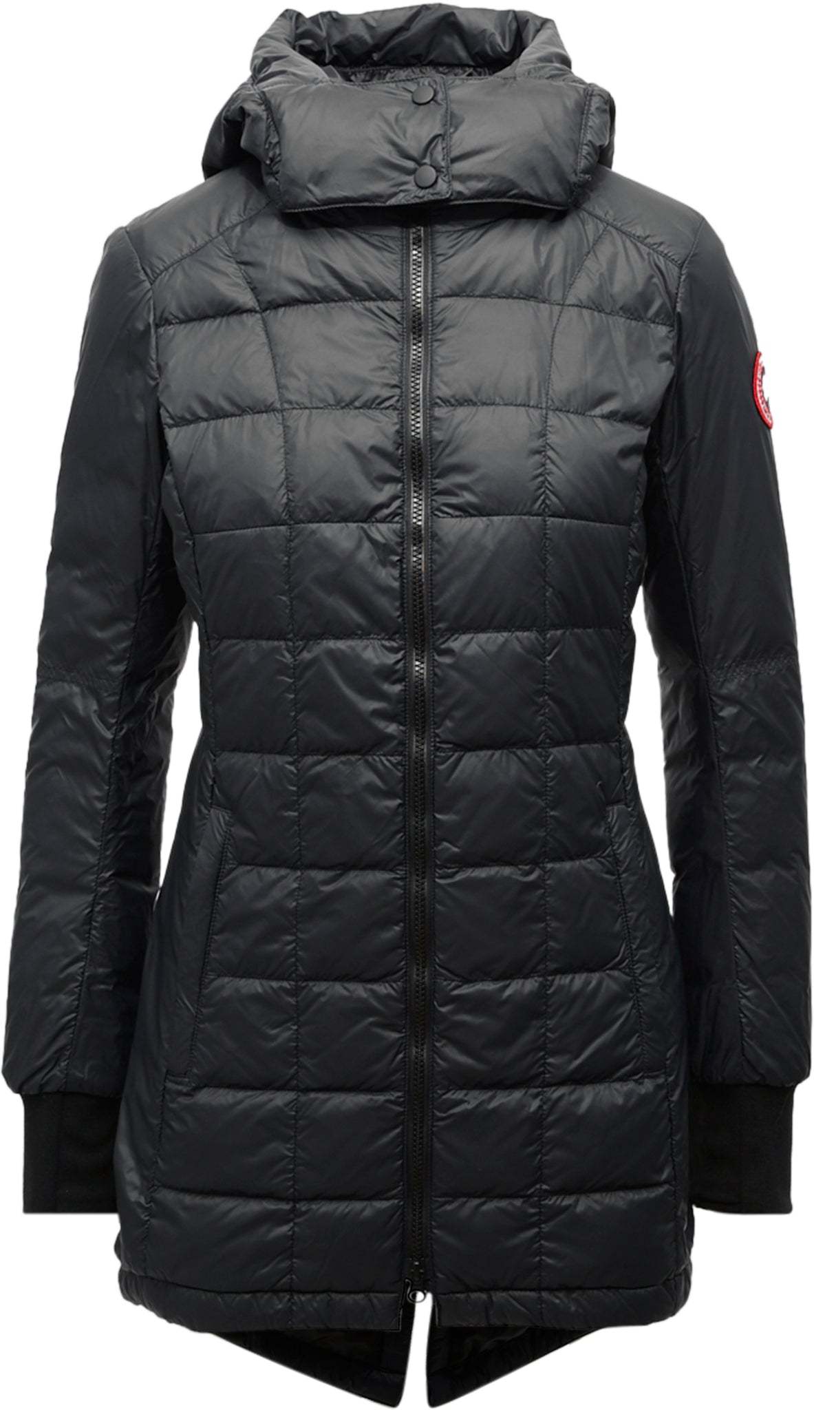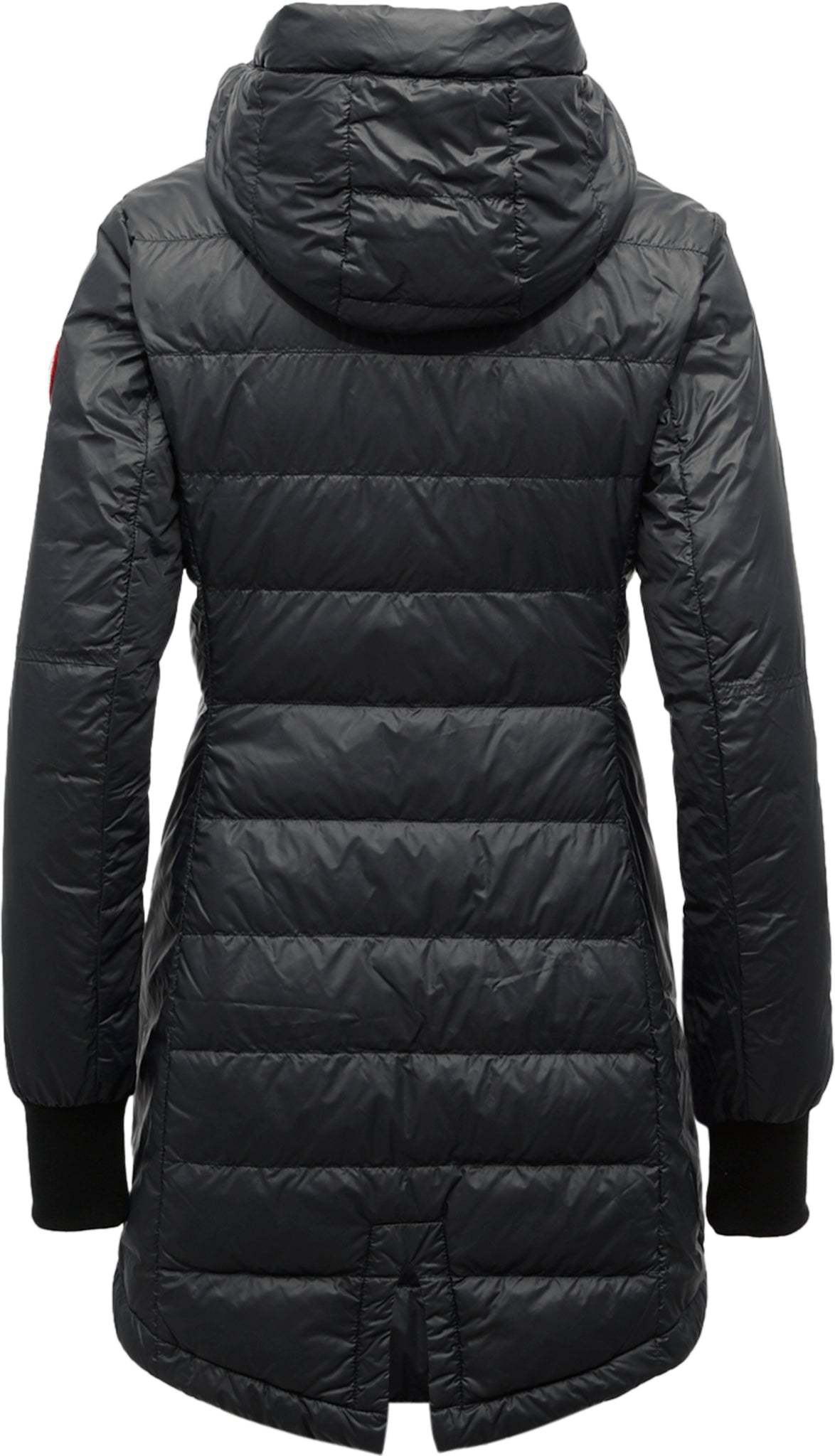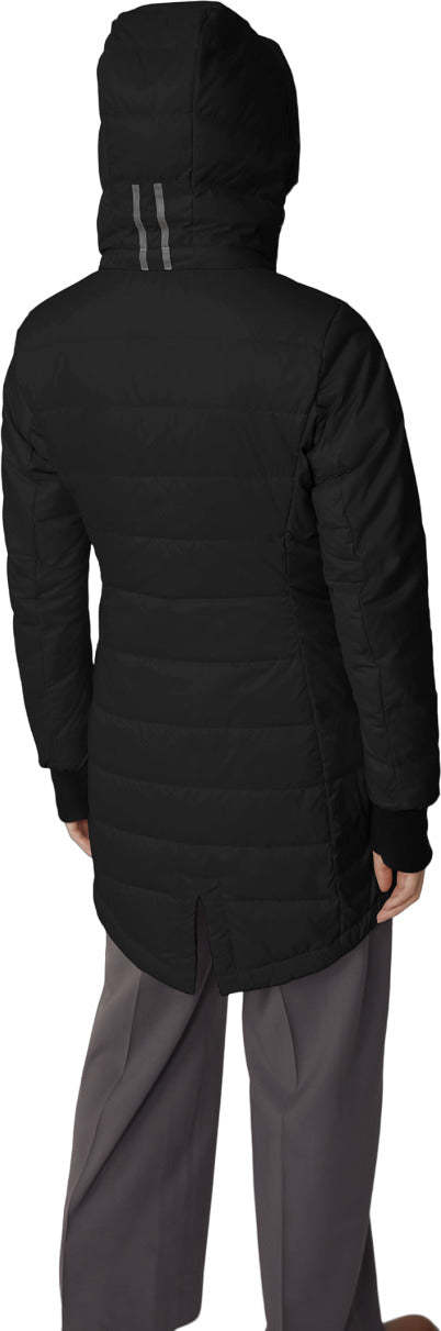 • Removable, adjustable down-filled hood adds warmth and element protection. Signature double-stripe reflective details at the back add visibility in low light. When hood is removed, the exposed zipper folds into the collar