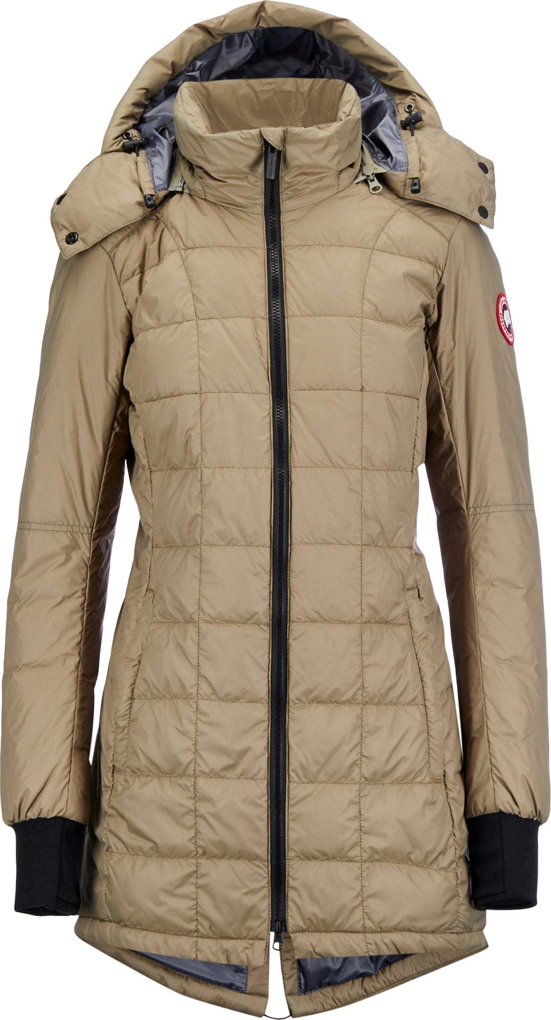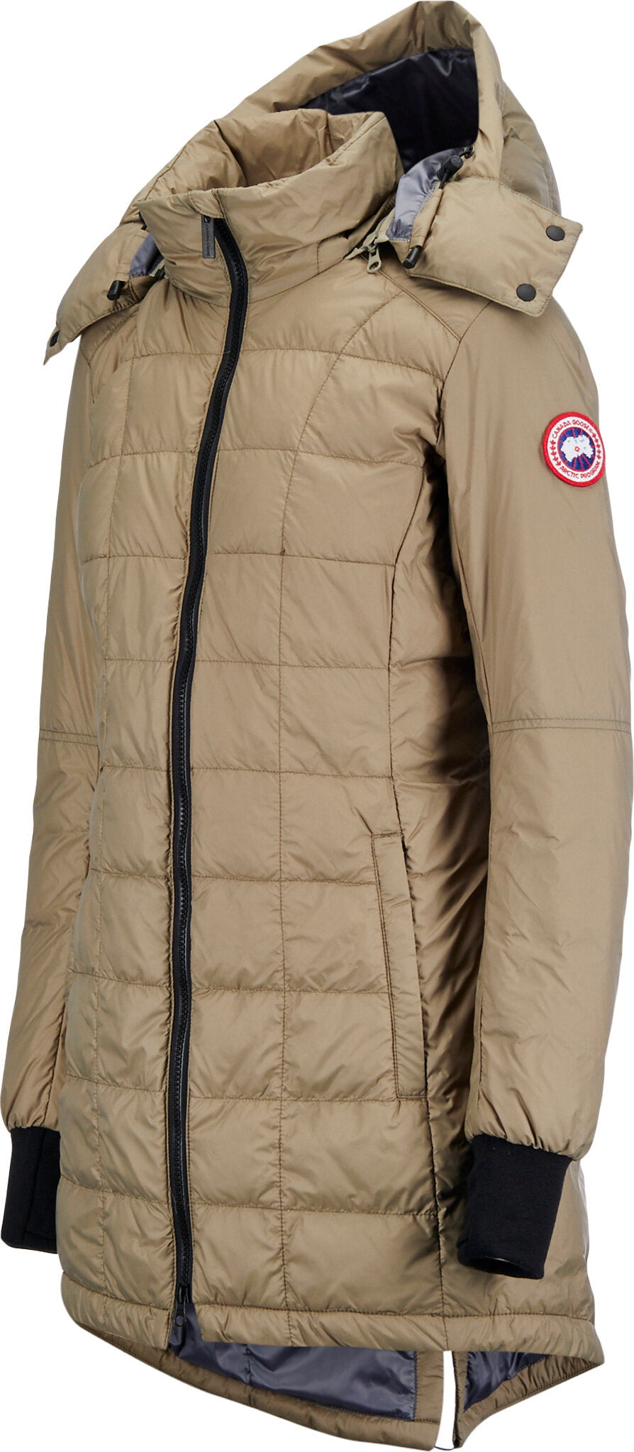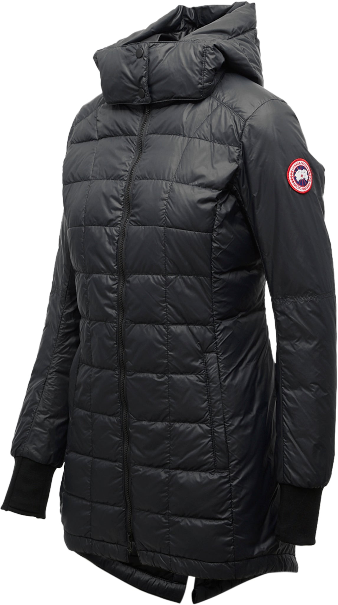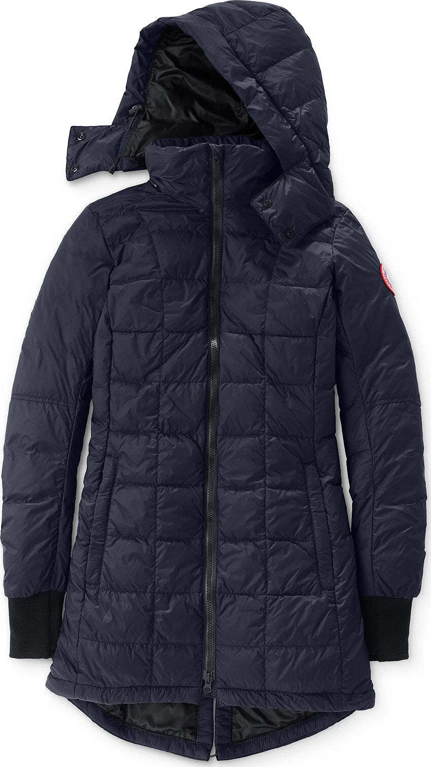 • Removable, adjustable down-filled hood adds warmth and element protection. Signature double-stripe reflective details at the back add visibility in low light. When hood is removed, the exposed zipper folds into the collar