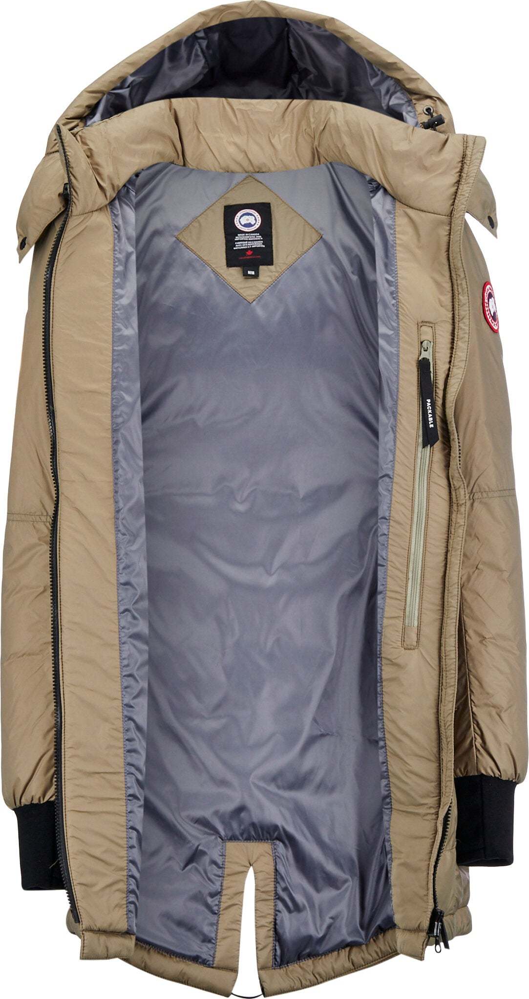 A removable down-filled hood and fishtail hem add coverage and warmth. Pack the whole jacket into an interior pocket for easy travel.