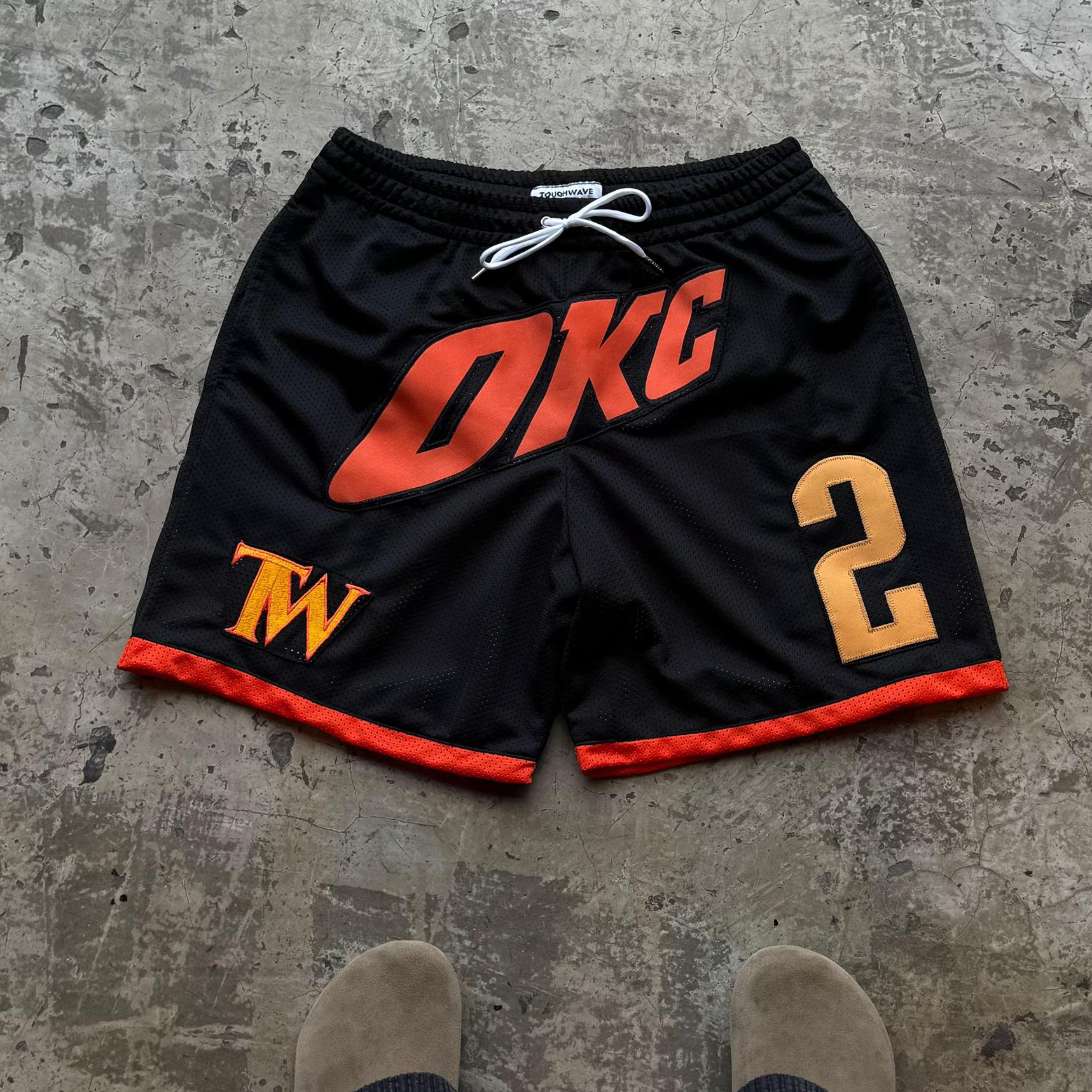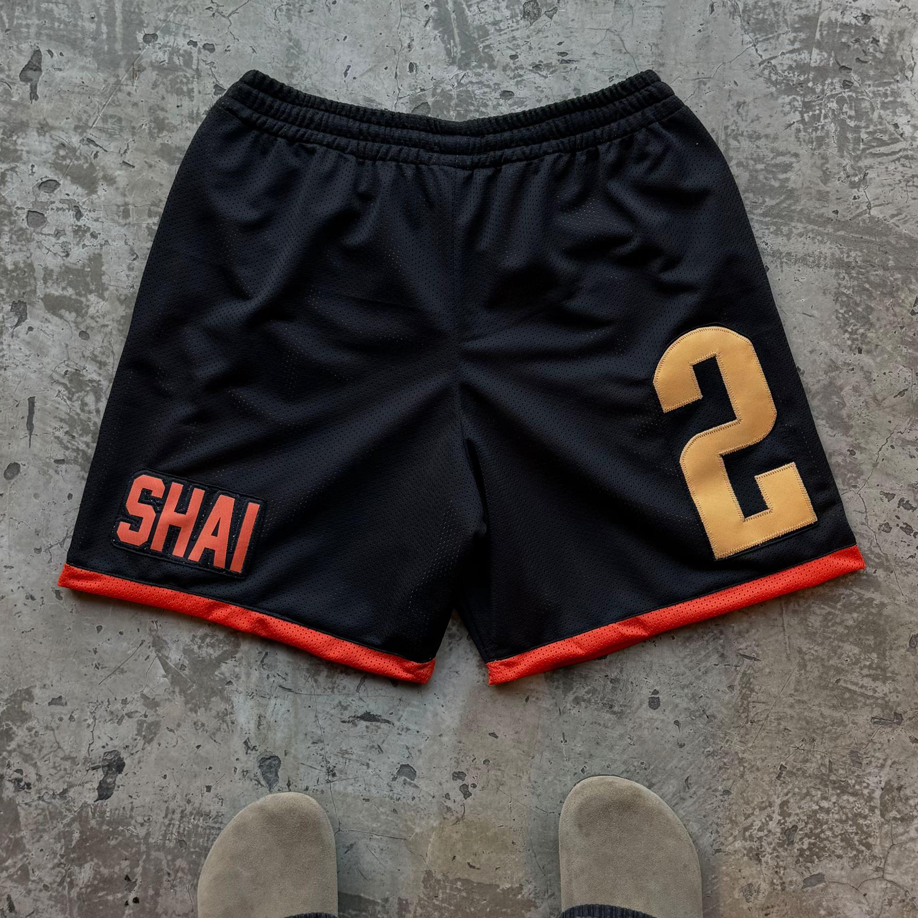 Contrast color appliqué sports mesh shorts
