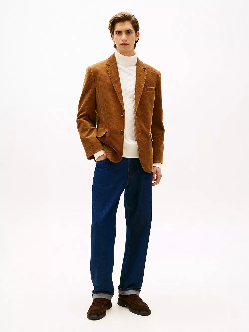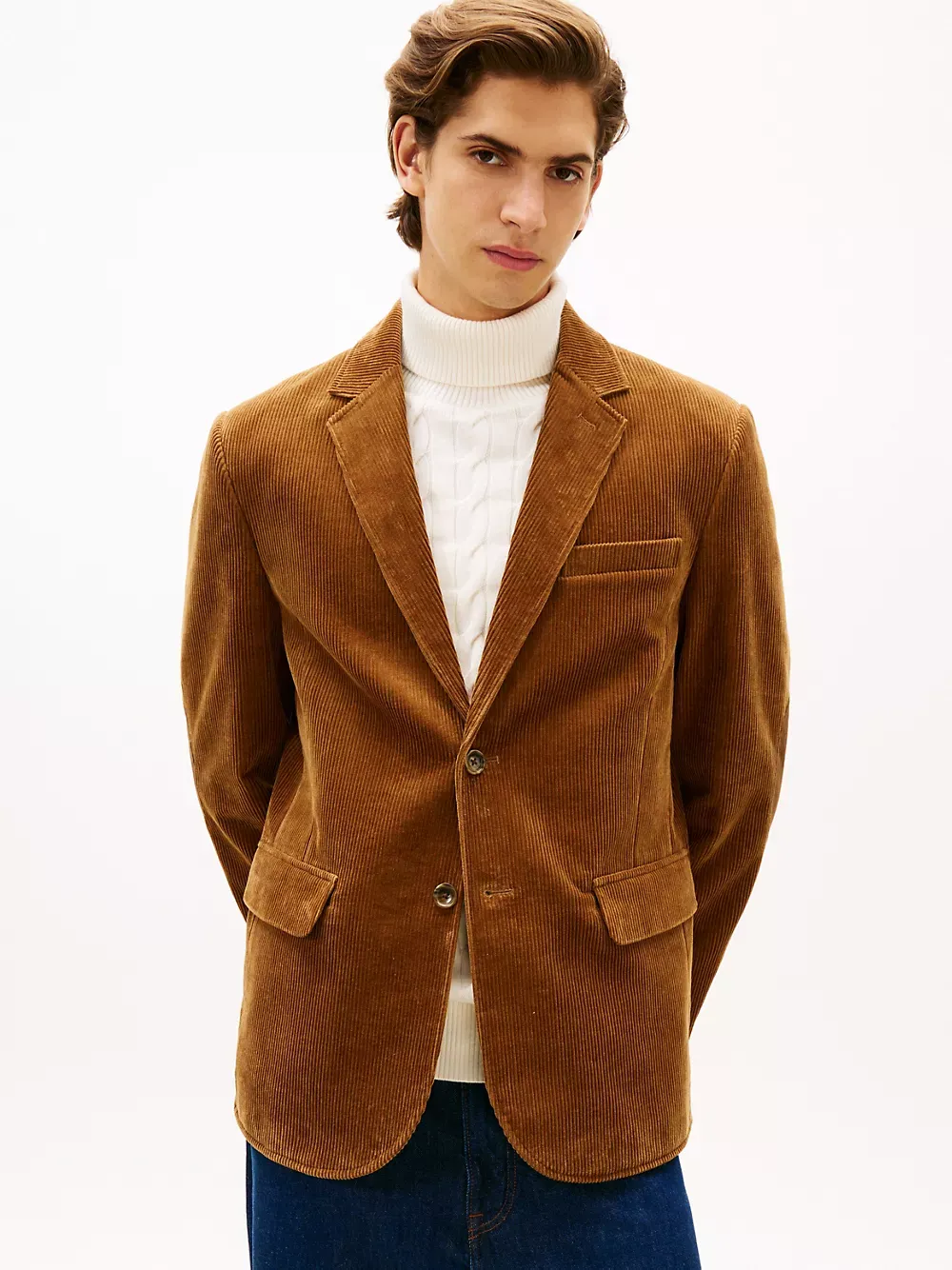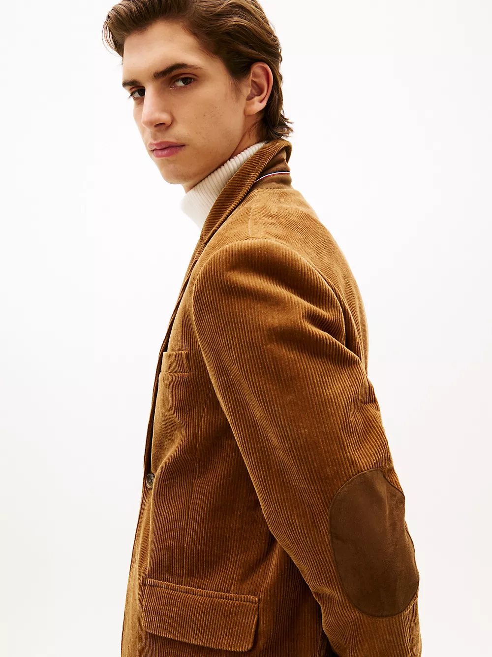Tommy Hilfiger men's blazer. Master smart-casual layering with this unlined blazer. Made from soft, textured corduroy and finished with contrast elbow patches, it works for the office or a weekend outing.