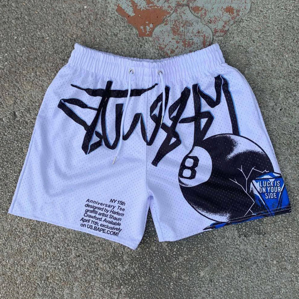 Diamond Black Eight Casual Street Retro Mesh Shorts