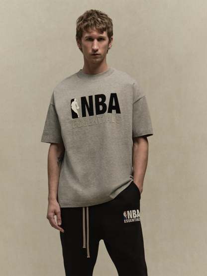 The NBA short sleeve tee is crafted from core cotton jersey. It features a relaxed fit in the body with dropped shoulders and a rib-knit crewneck. On the front, there is a rubberized soft-touch NBA lockup along with the iconic NBA logo. Additionally, a rubberized label is located at the back collar.