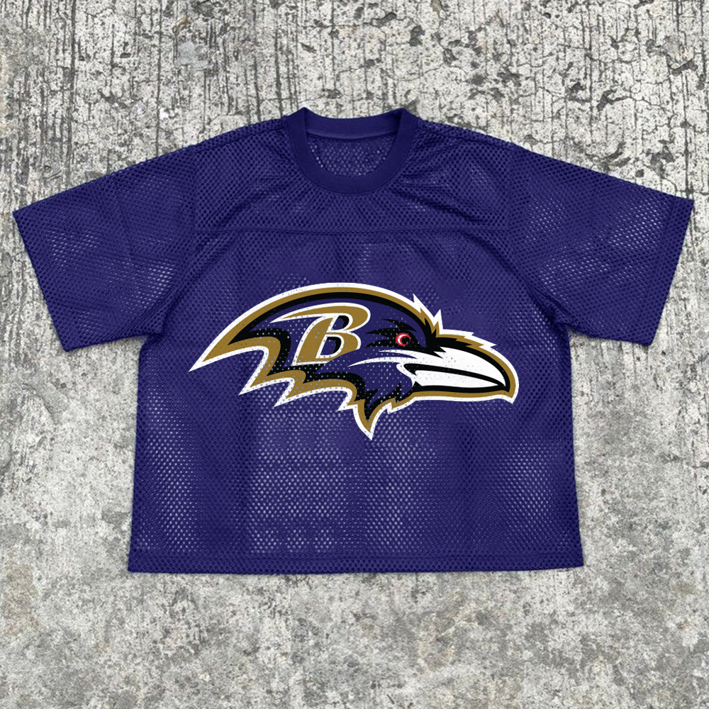 Fashion Ravens Print Mesh Jersey