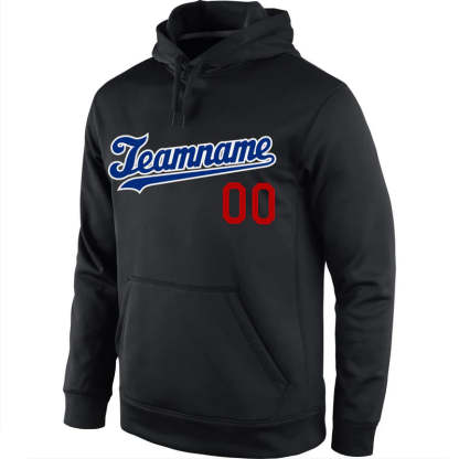 Custom Stitched Black Royal-Red Sports Pullover Sweatshirt Hoodie