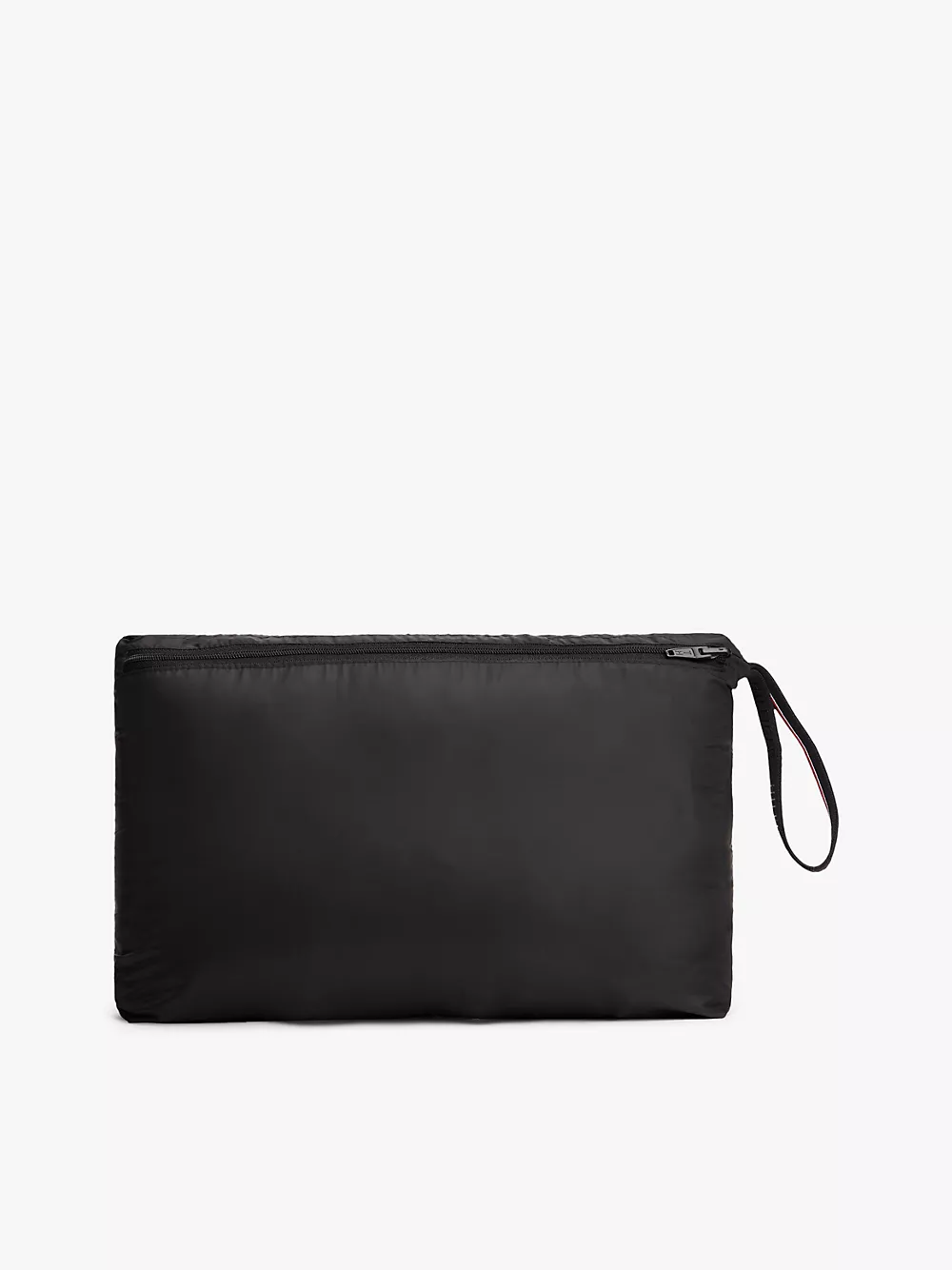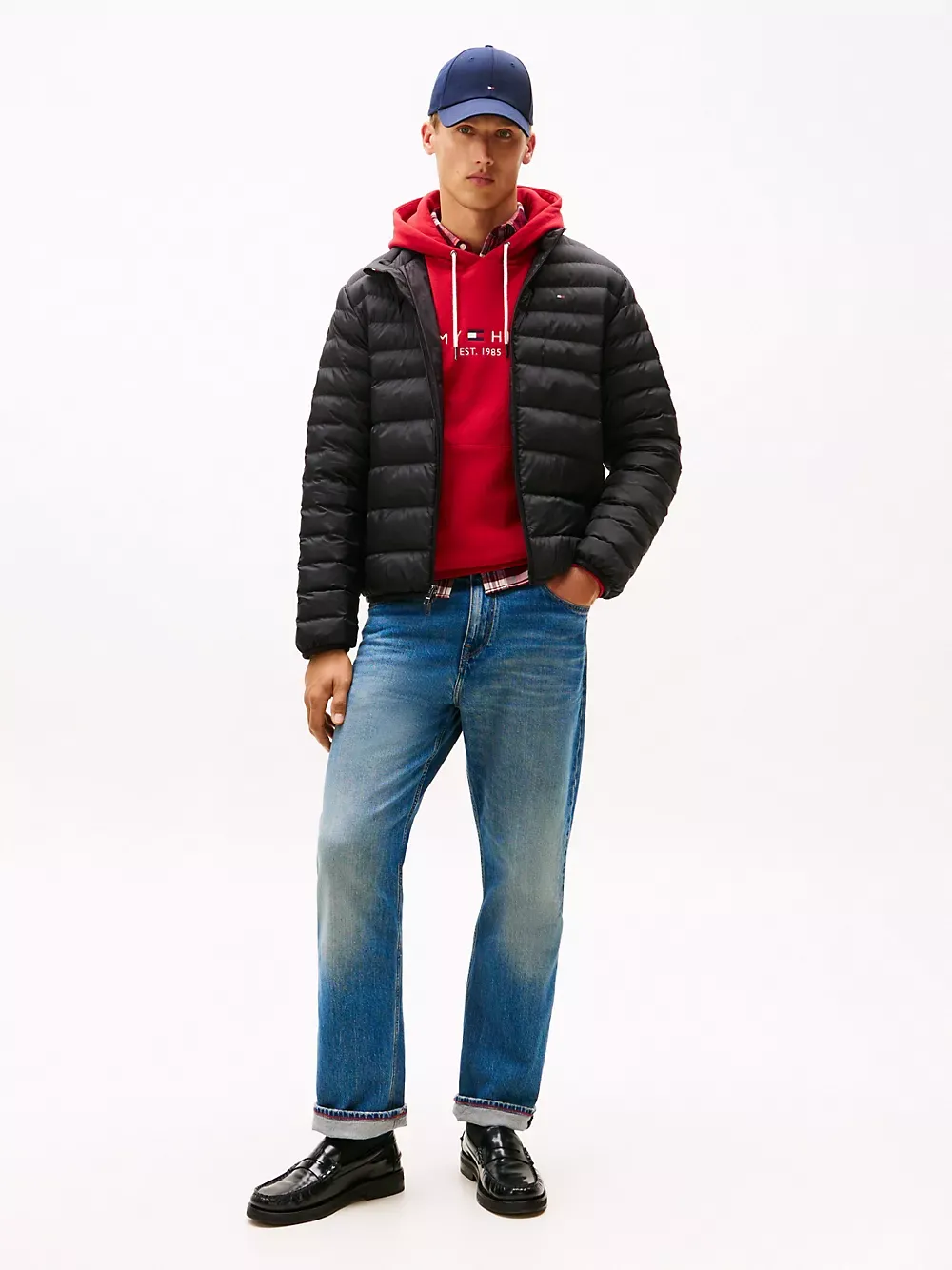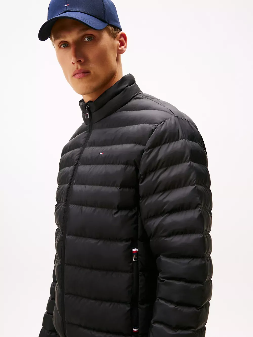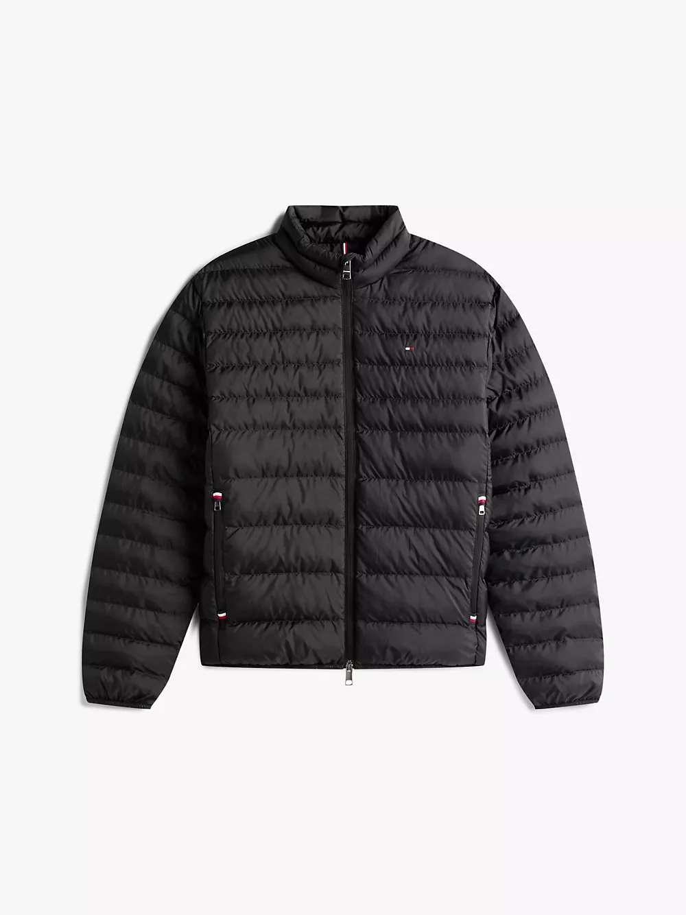 Tommy Hilfiger men's jacket. Ideal for travel, this puffer jacket folds down to a fraction of its size and easily stores in the internal security zip pocket. Made from lightweight fabric and toasty insulation, it's ready for whatever the weather report is dishing out.