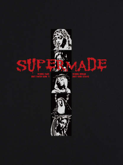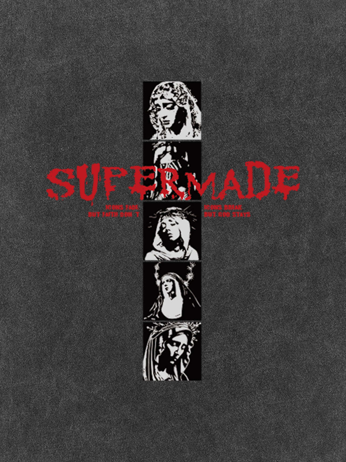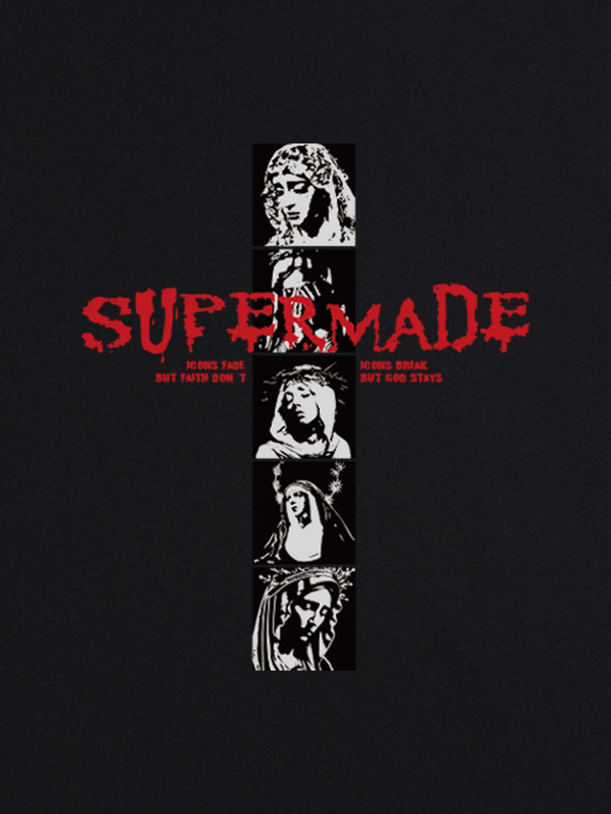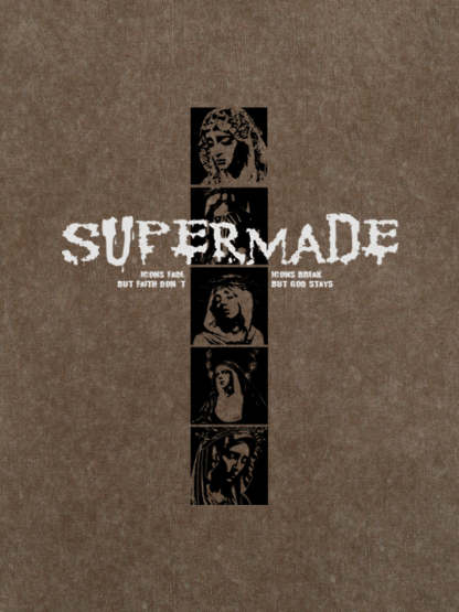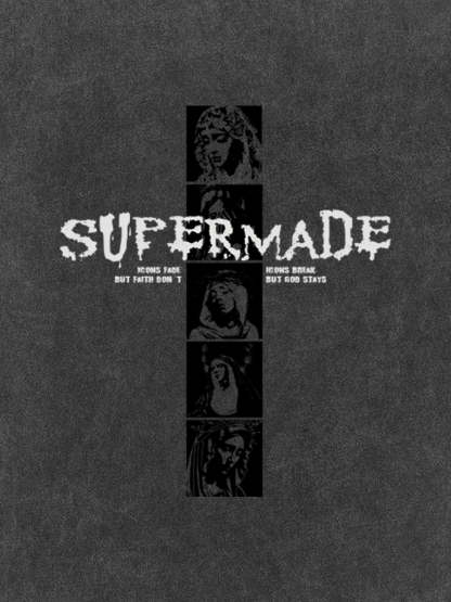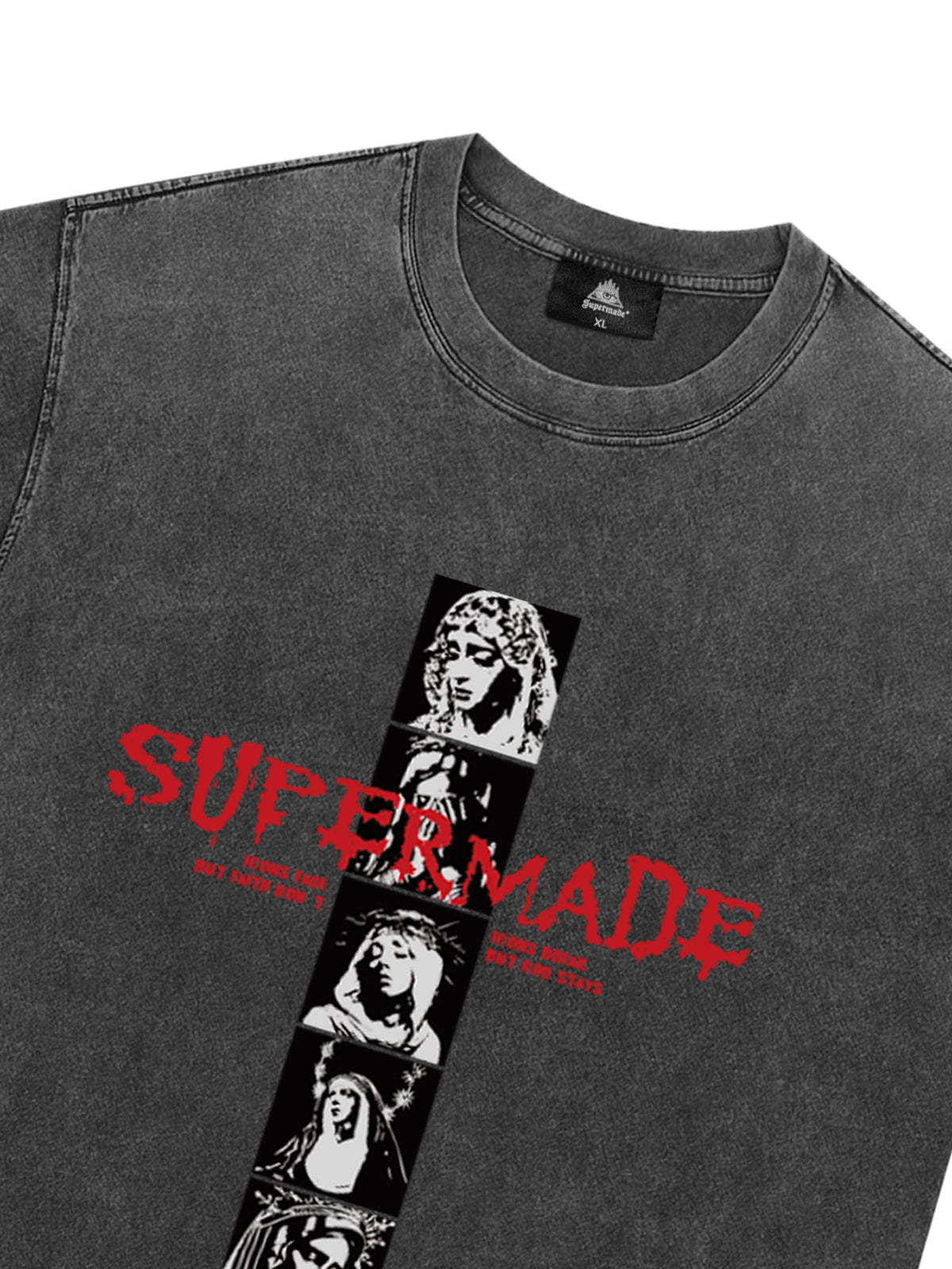 • Design Elements: Vertical graphic print with bold text, artistic portraits