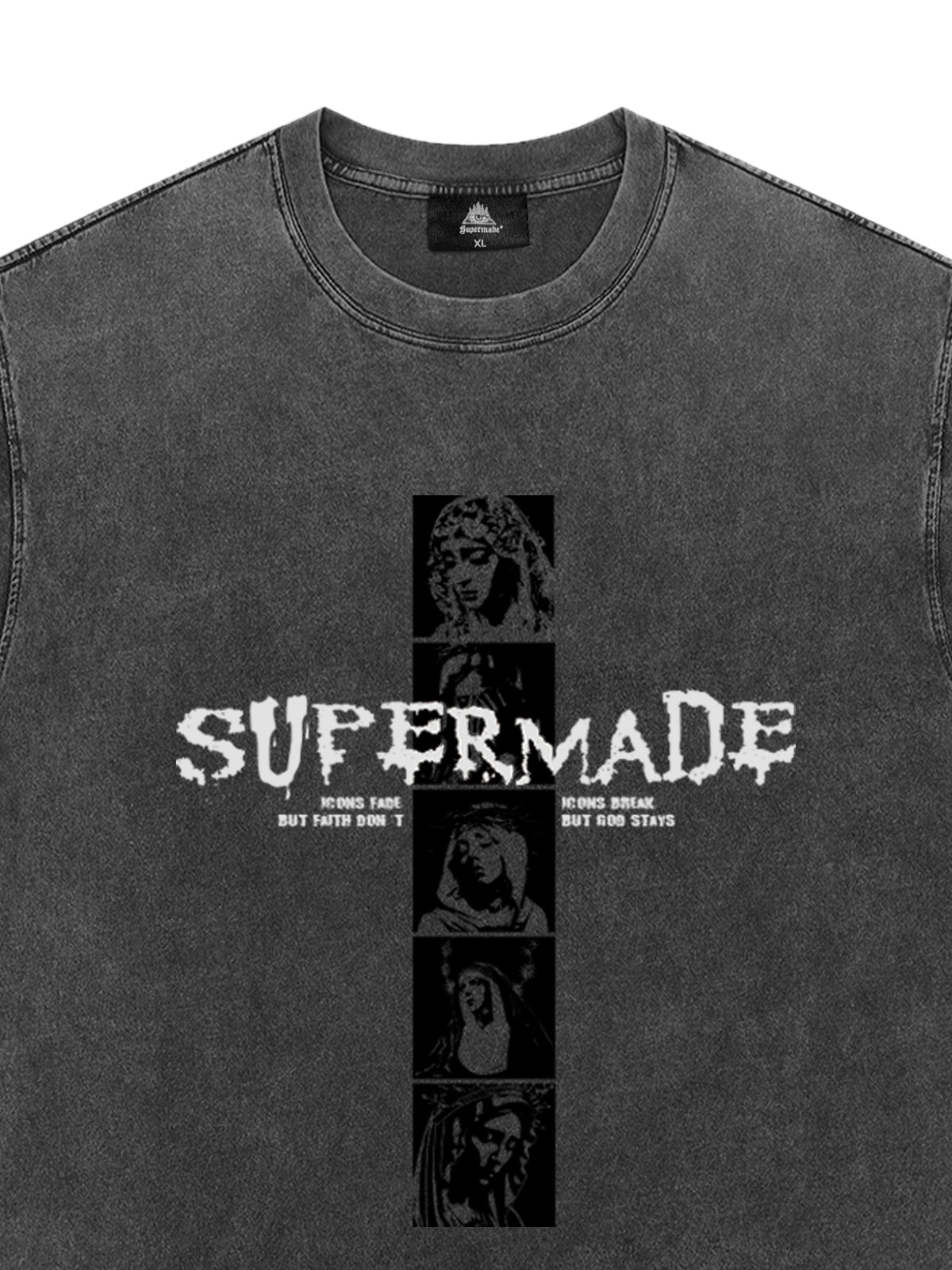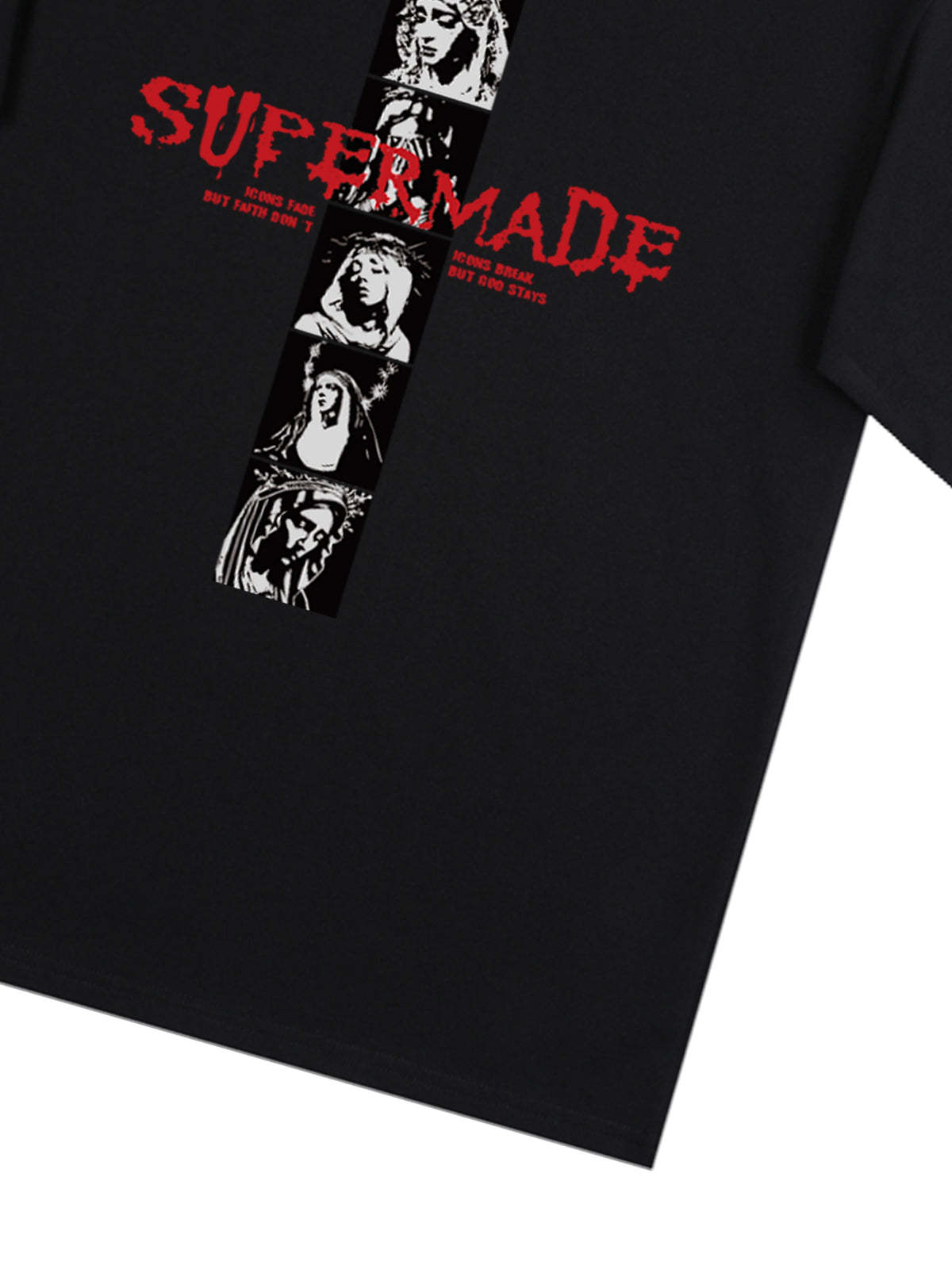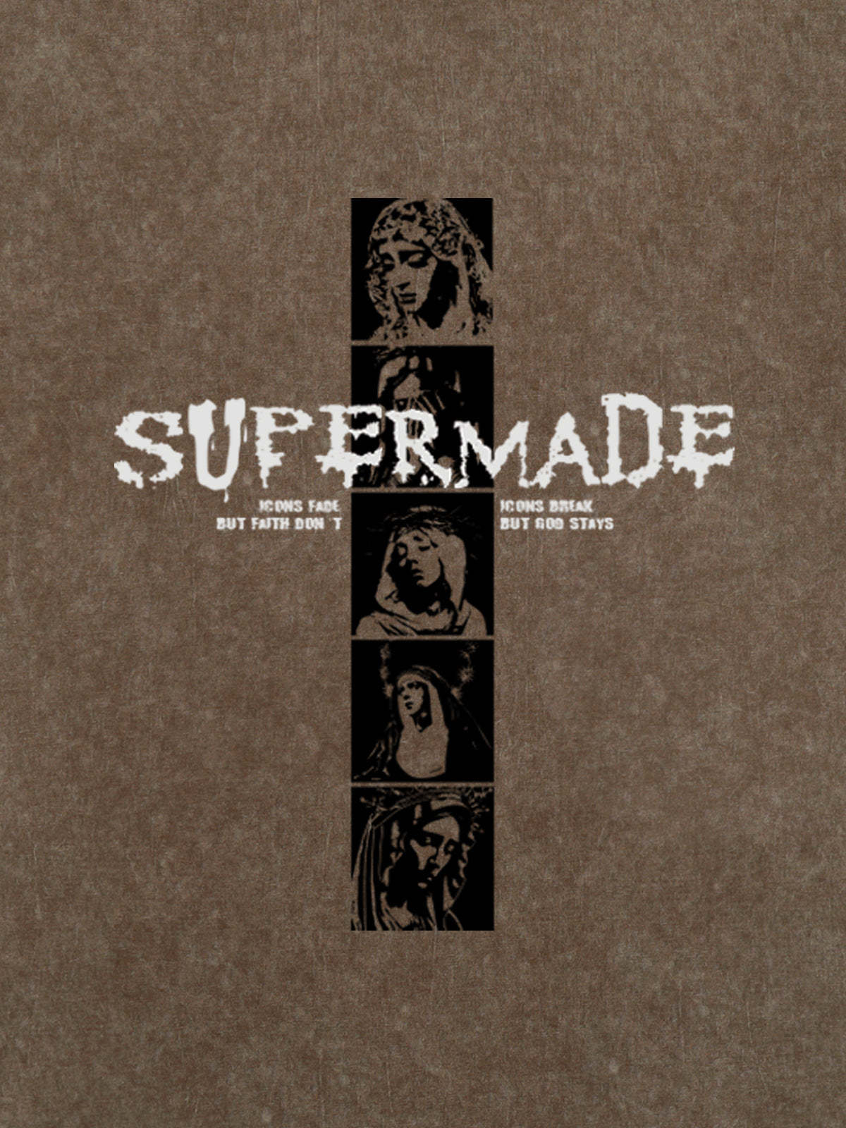 • Design Elements: Vertical graphic print with bold text, artistic portraits
