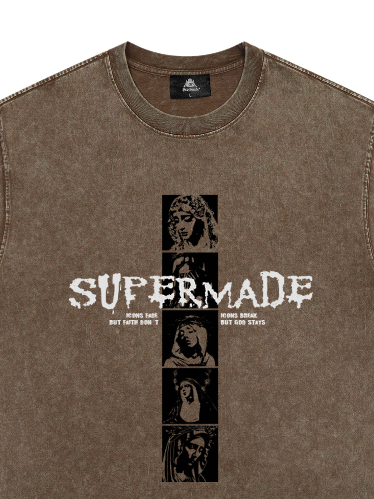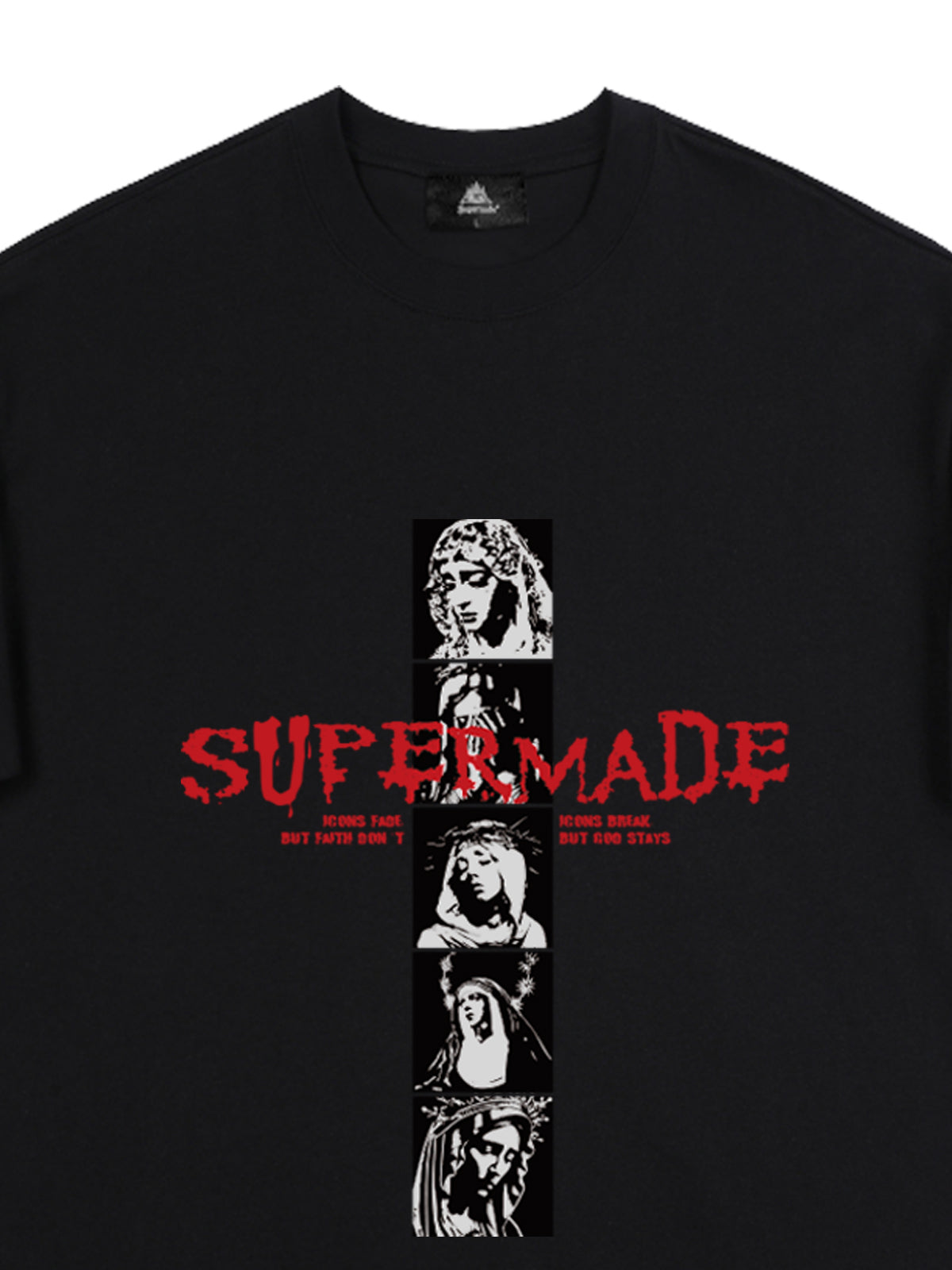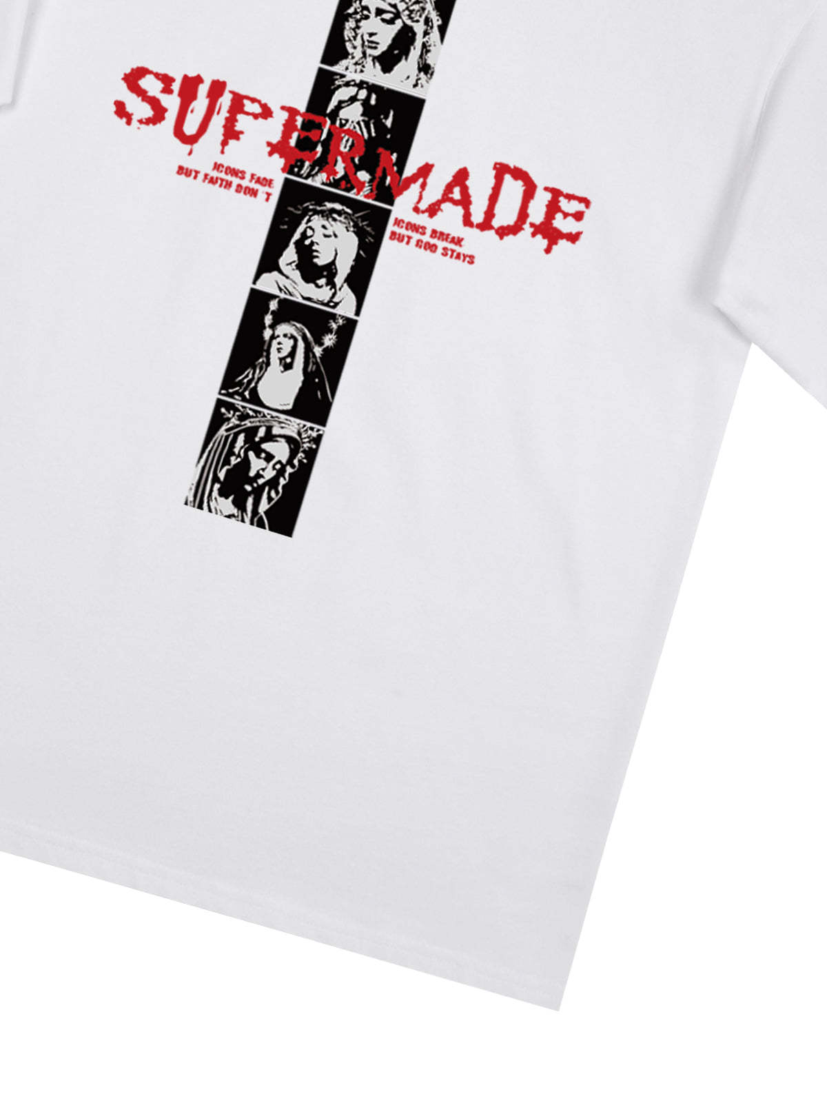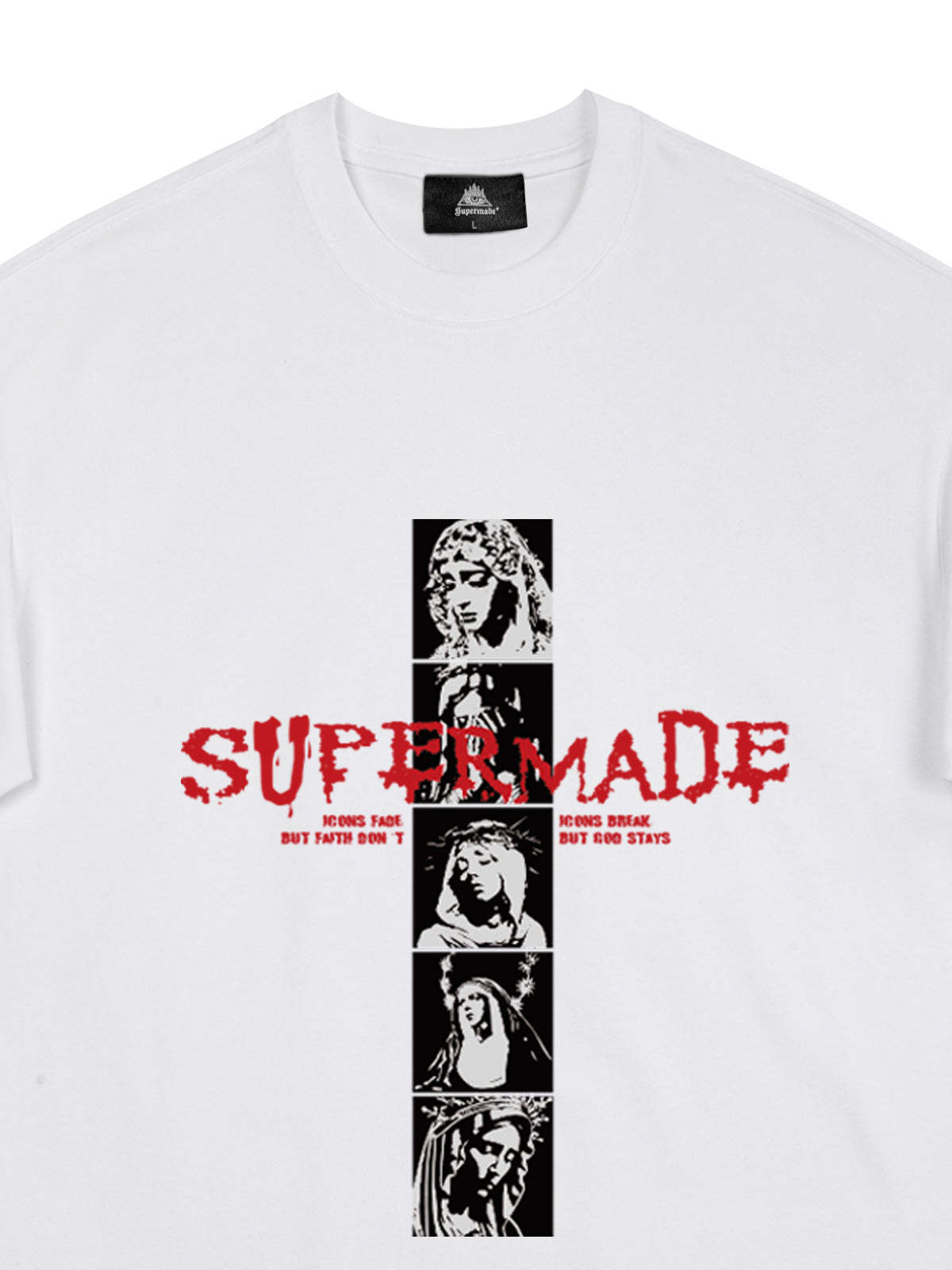 • Design Elements: Vertical graphic print with bold text, artistic portraits