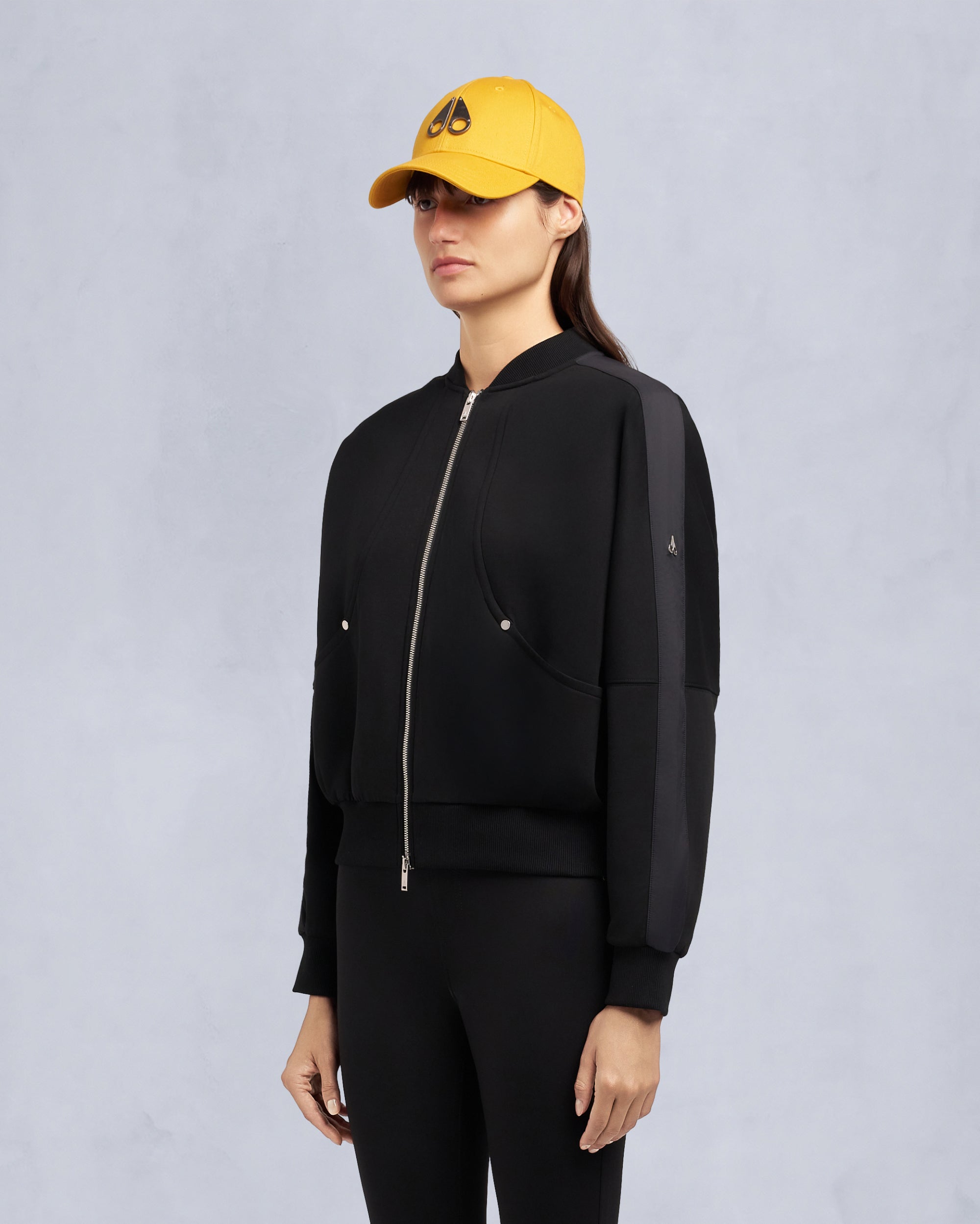 With a sleek aesthetic and easy-to-wear vibe, the Mix Media Bomber showcases high-performance neoprene and recycled nylon. Rib knit hem, cuff, and collar celebrate a sweater look while the two-way Metaluxe zipper and matte silver logo add a luxe element.