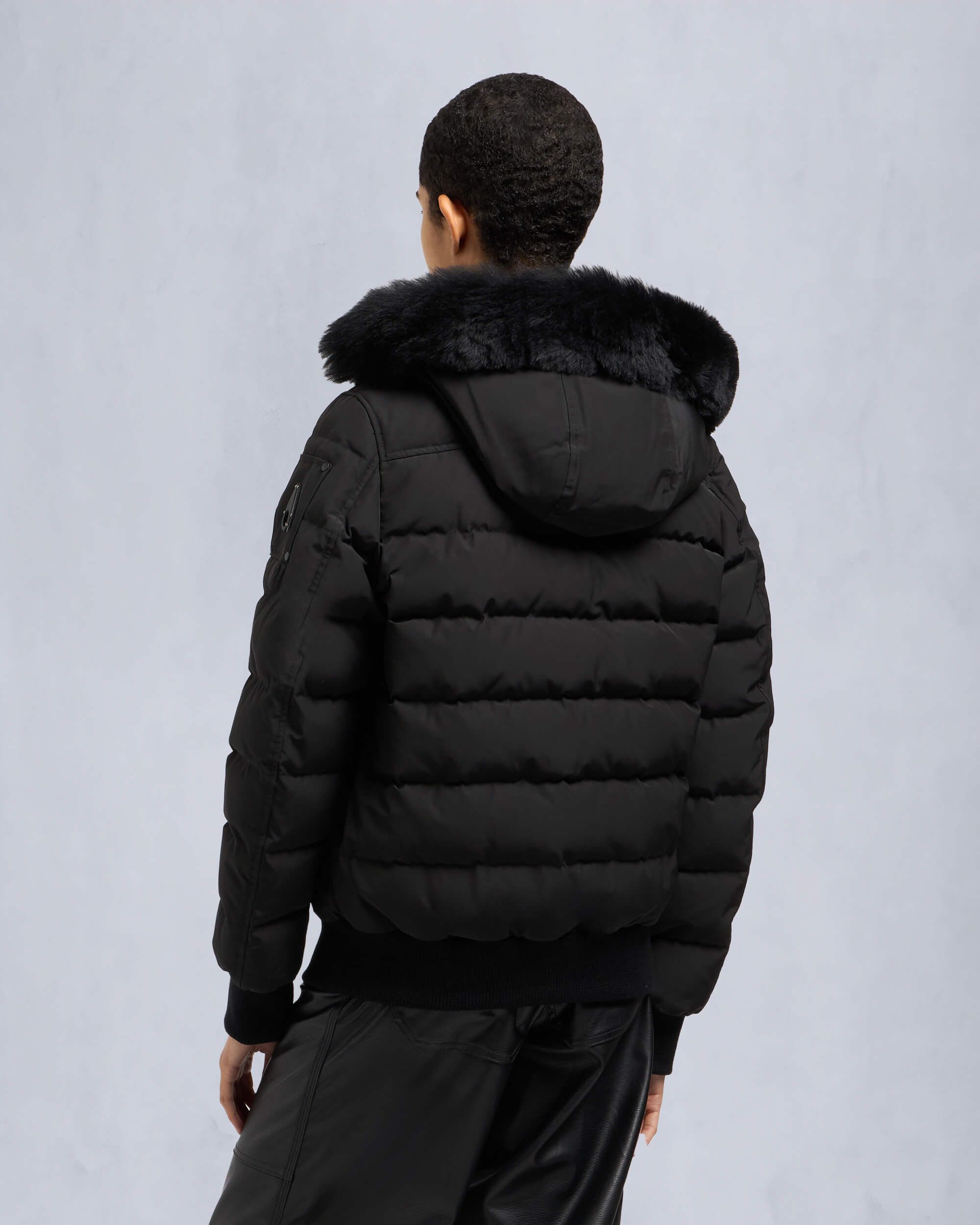 ONYX LADRIERE SHEARLING BOMBER JACKET-BLACK/BLACK