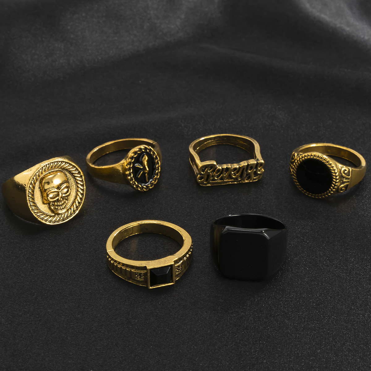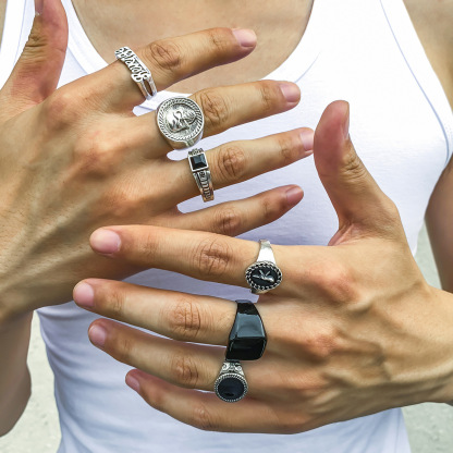 Punk Crystal Skull Multi-element Men's Ring Set