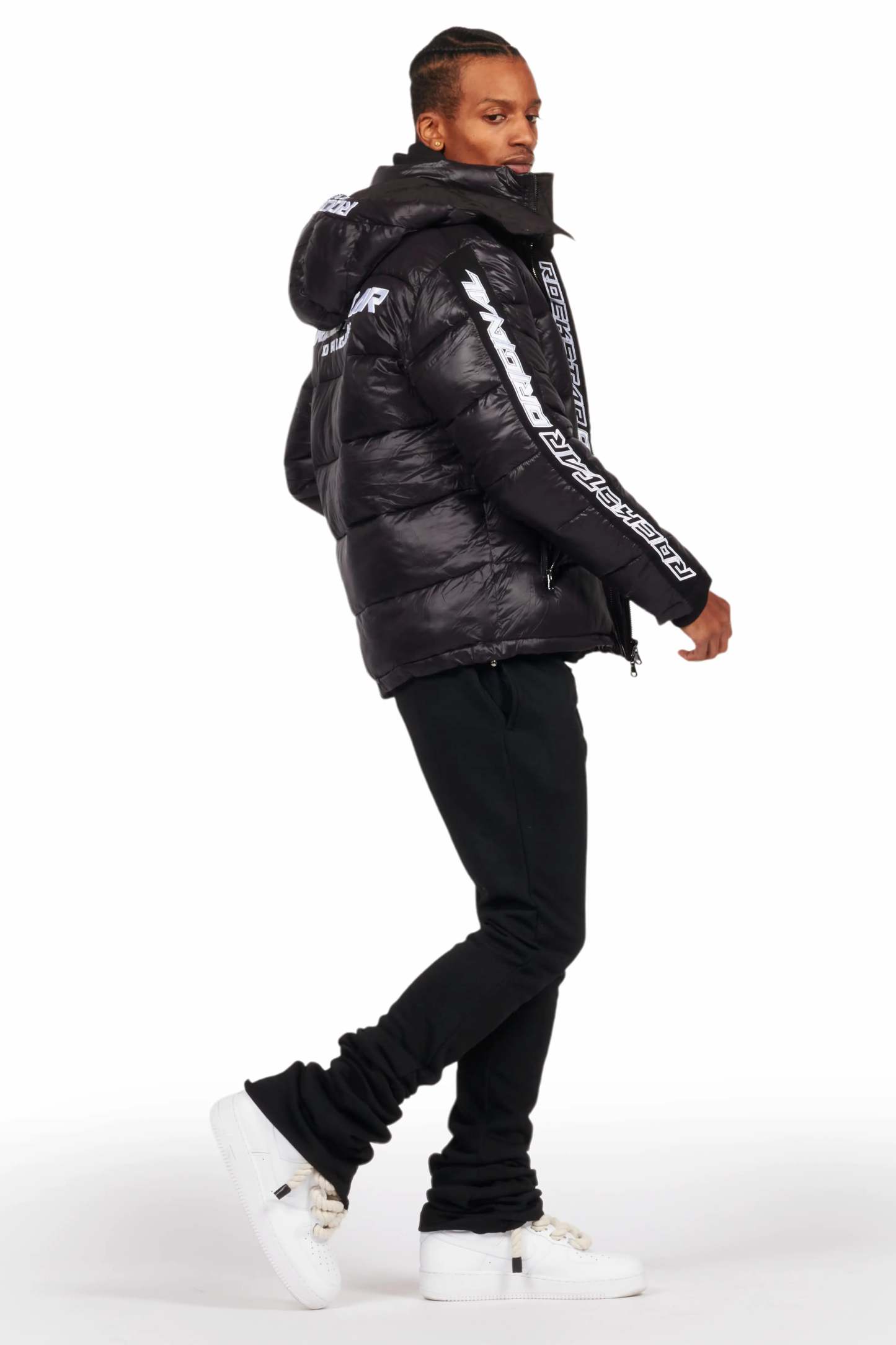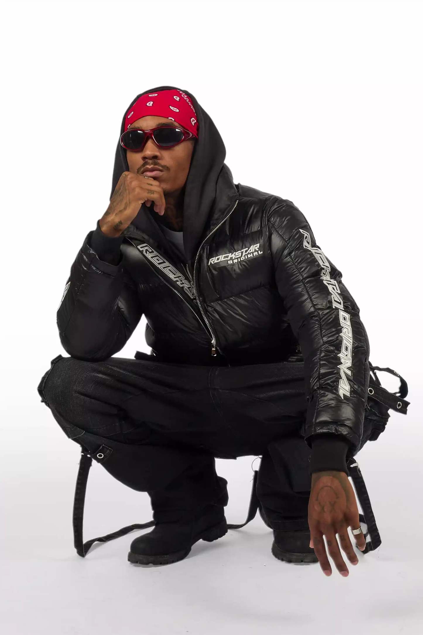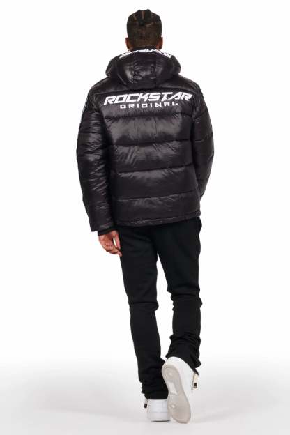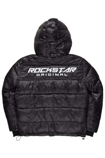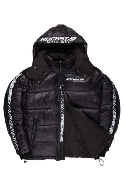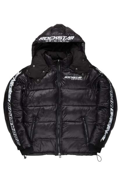 An urban quilted puffer jacket for men in jet black. Designed with water-resistant fabric for optimal warmth.
