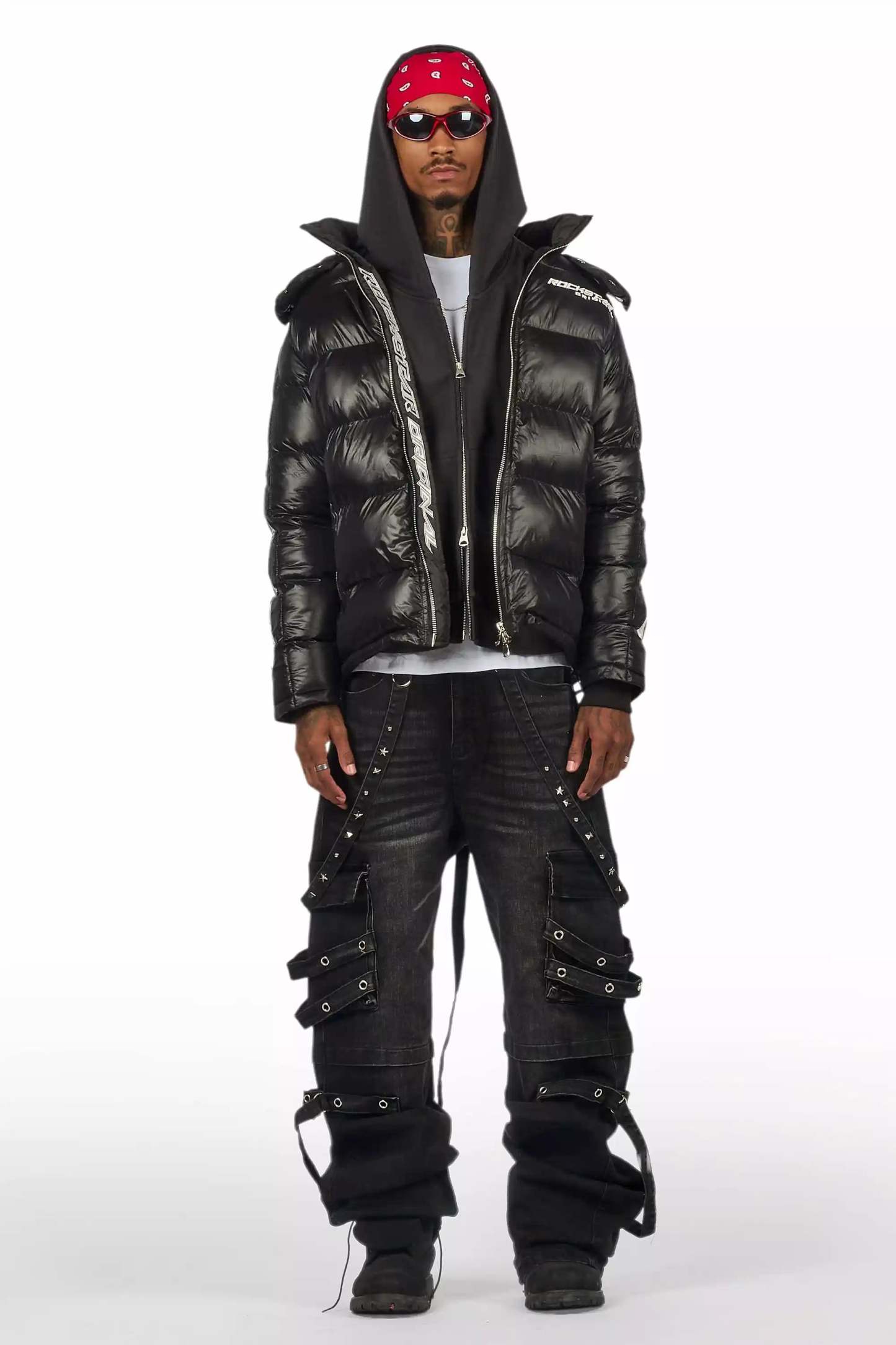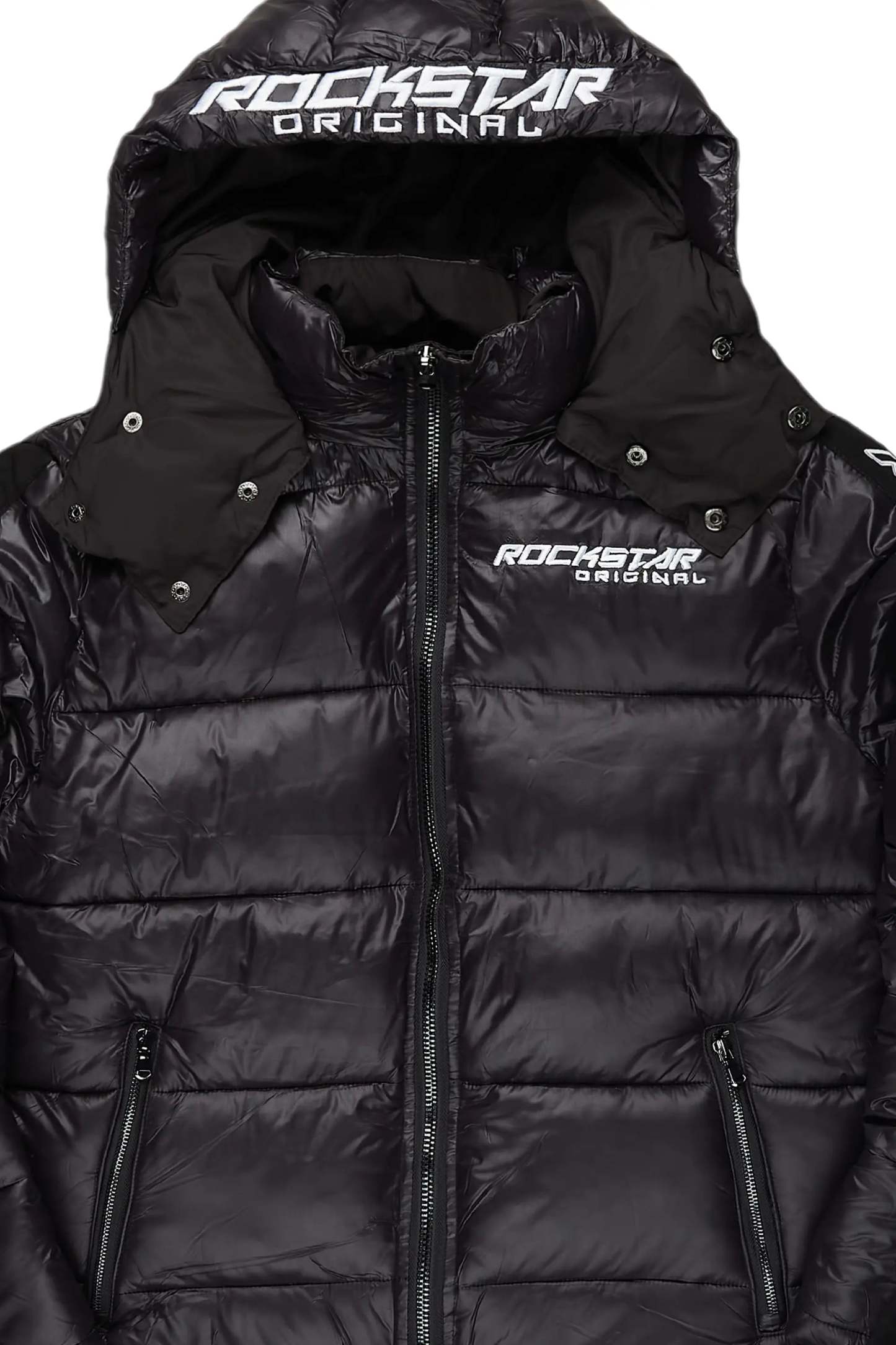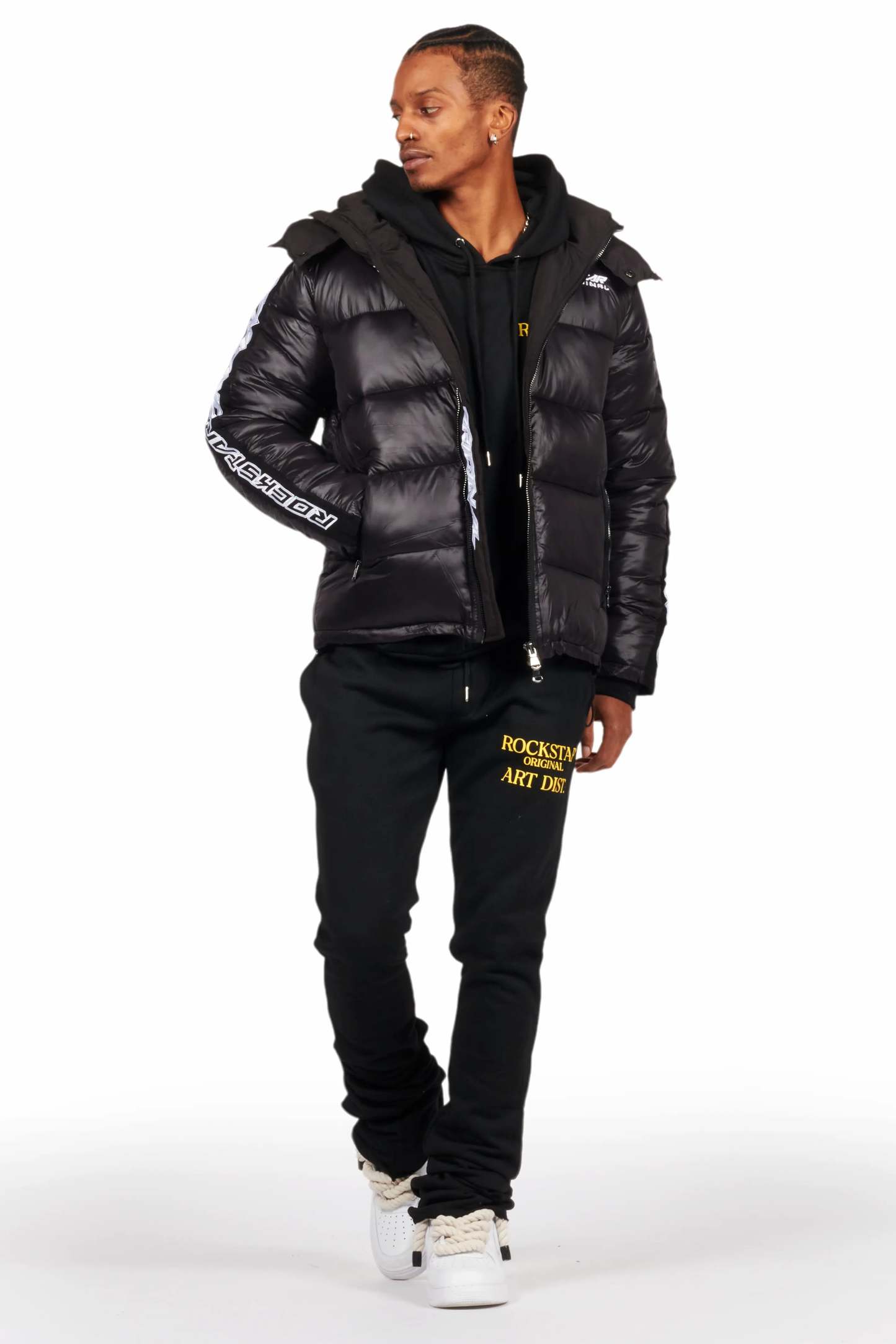 An urban quilted puffer jacket for men in jet black. Designed with water-resistant fabric for optimal warmth.