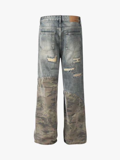 Ripped Camouflage Patchwork Baggy Jeans