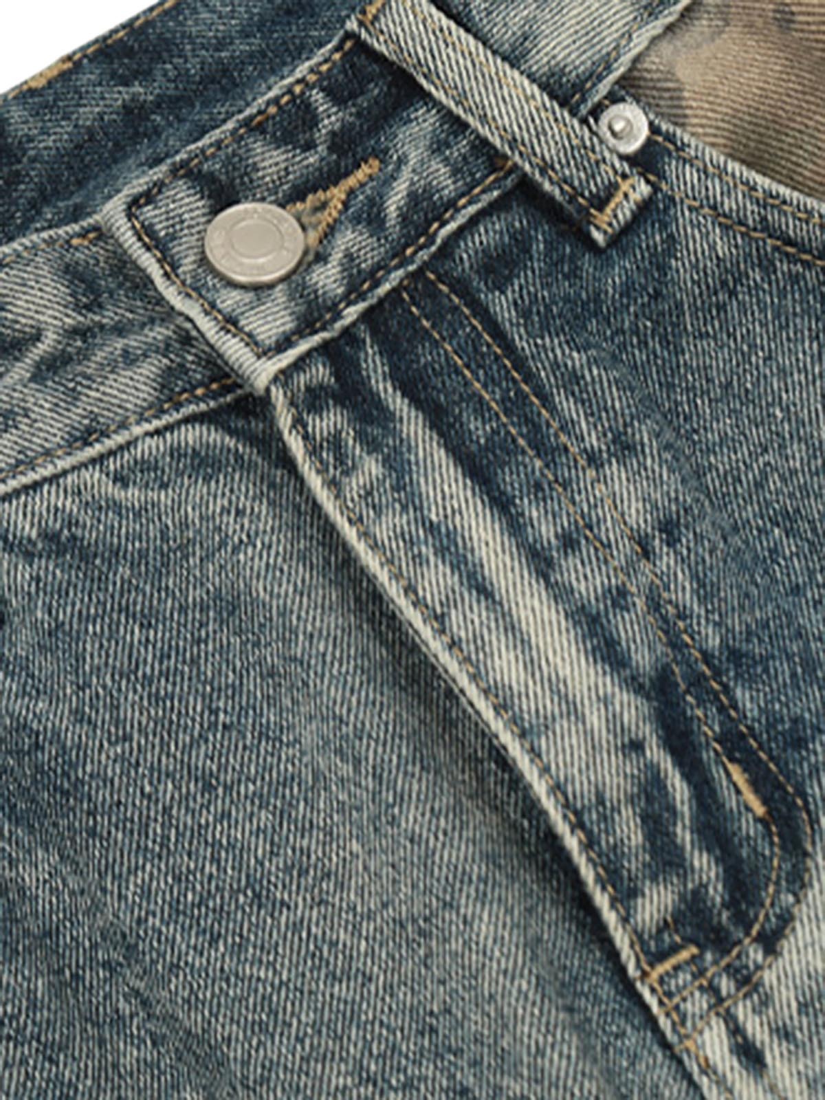 • Detail Features: Distressed Details, Patchwork Design, Wide Leg Fit