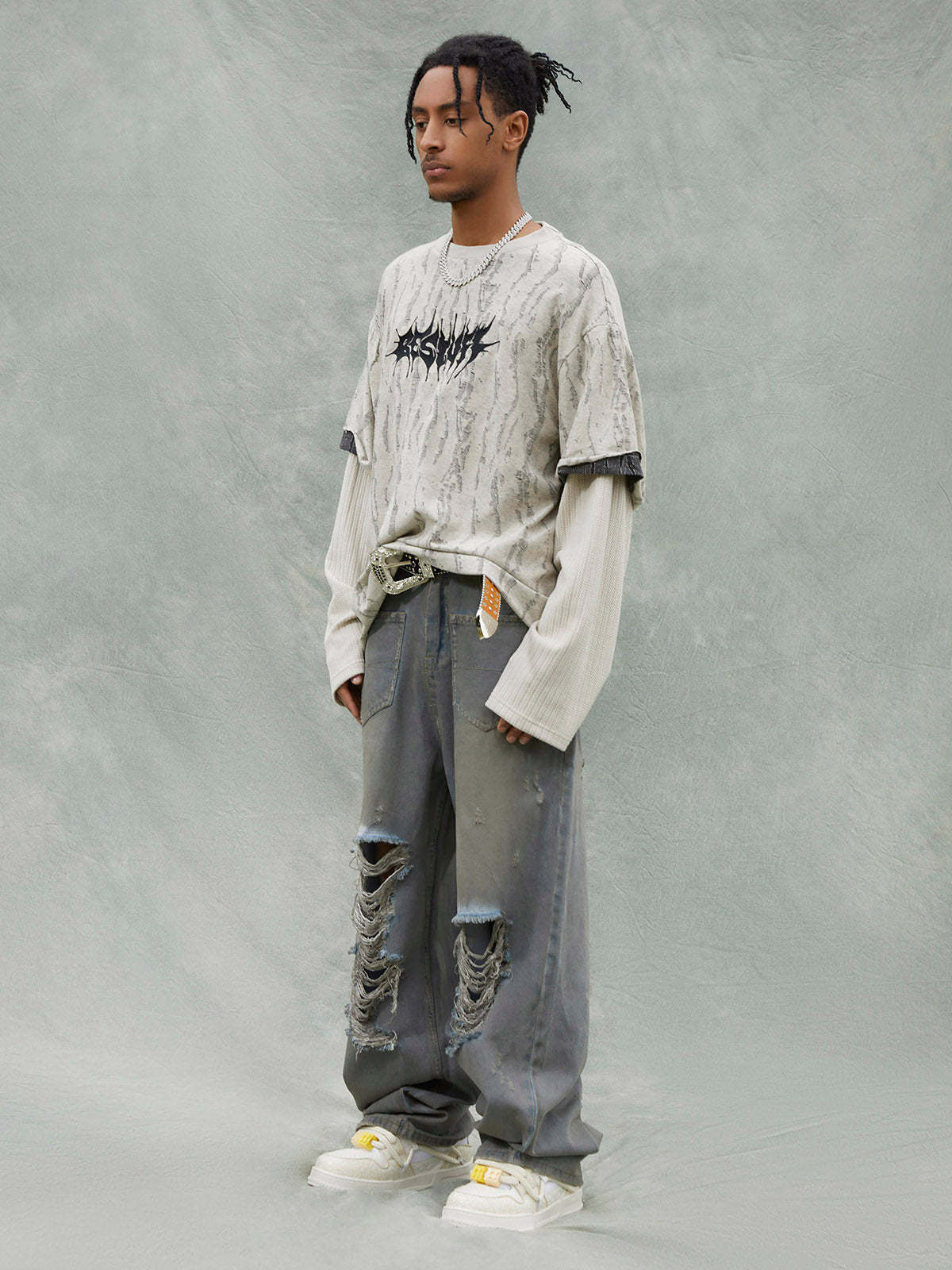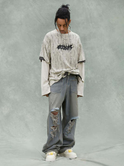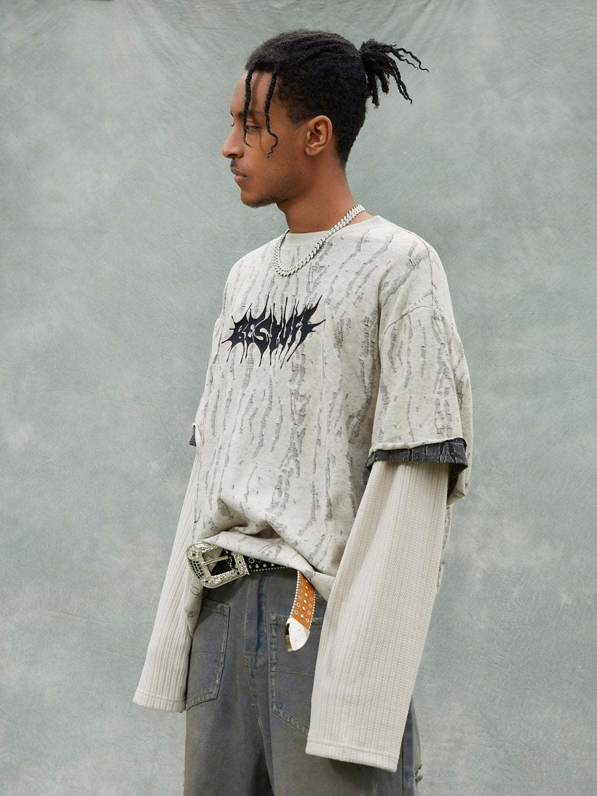 Thesupermade Faux Two-piece Distressed Woolen T-shirt - 2005