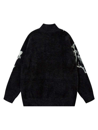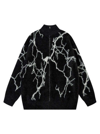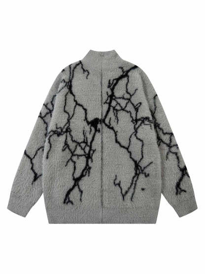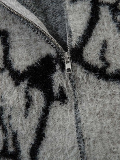 Thesupermade Lightning Graphic Imitation Mink Fur Zip Up Sweater