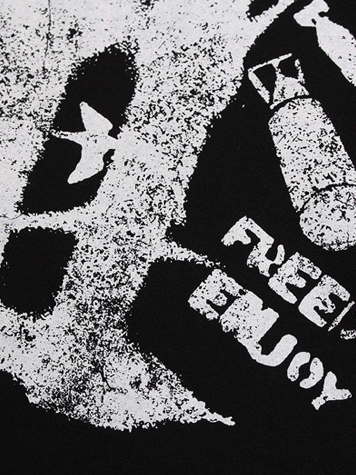 • Design Elements: Bold Red Graffiti Text, Black Silhouette Artwork, Urban Street Style Print