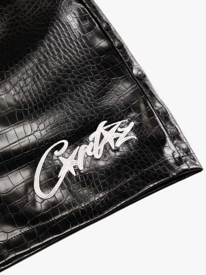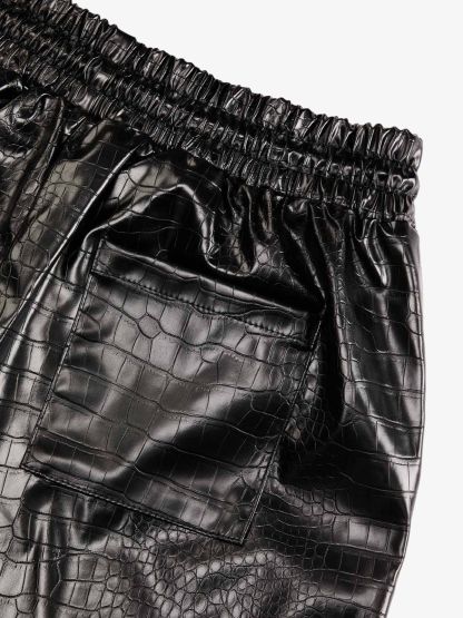 • Design Elements: Bold "BLACK" logo print in metallic silver, elastic waistband with adjustable drawstring