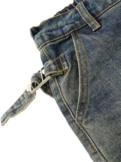 • Detail Features: Side Drawstrings, Distressed Look, Relaxed Fit