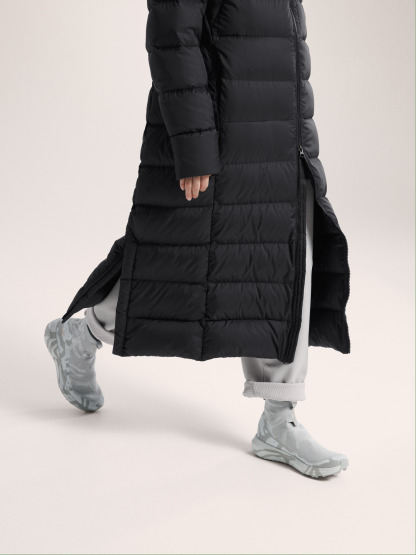 From the hood to the top of your boots – this is full-coverage warmth for winter's coldest days. The 750 fill-power goose down insulation is light, efficient, and responsibly sourced. Down Composite Mapping places Coreloft synthetic insulation in areas prone to moisture, including the hood, zipper guard, and under the arms, and the light, durable Arato 30 nylon shell has a PFAS-free treatment to repel water. Multiple pockets – inside and out – provide storage, and the two-way front zip and side-seam zippers at the hem free your stride.