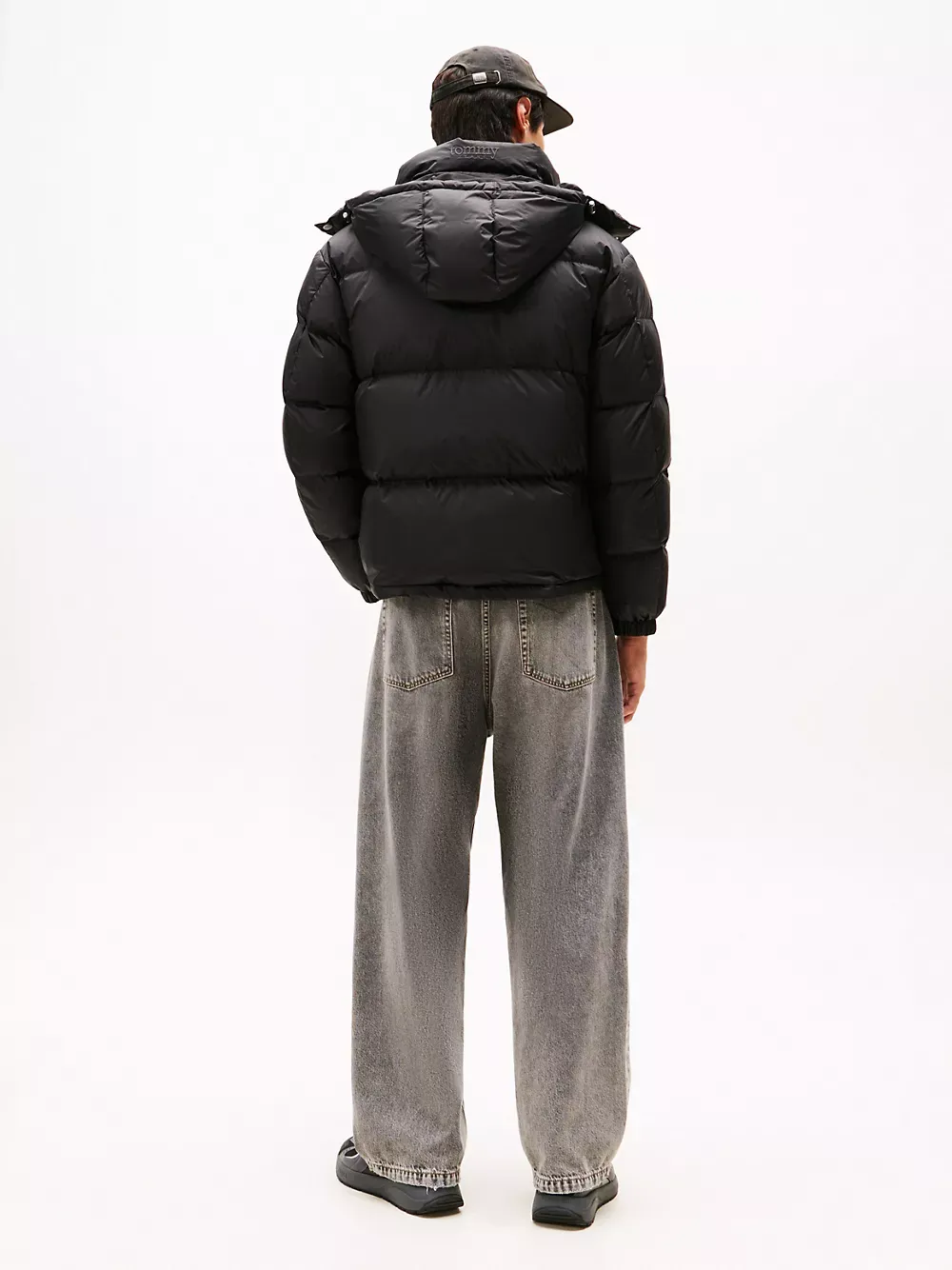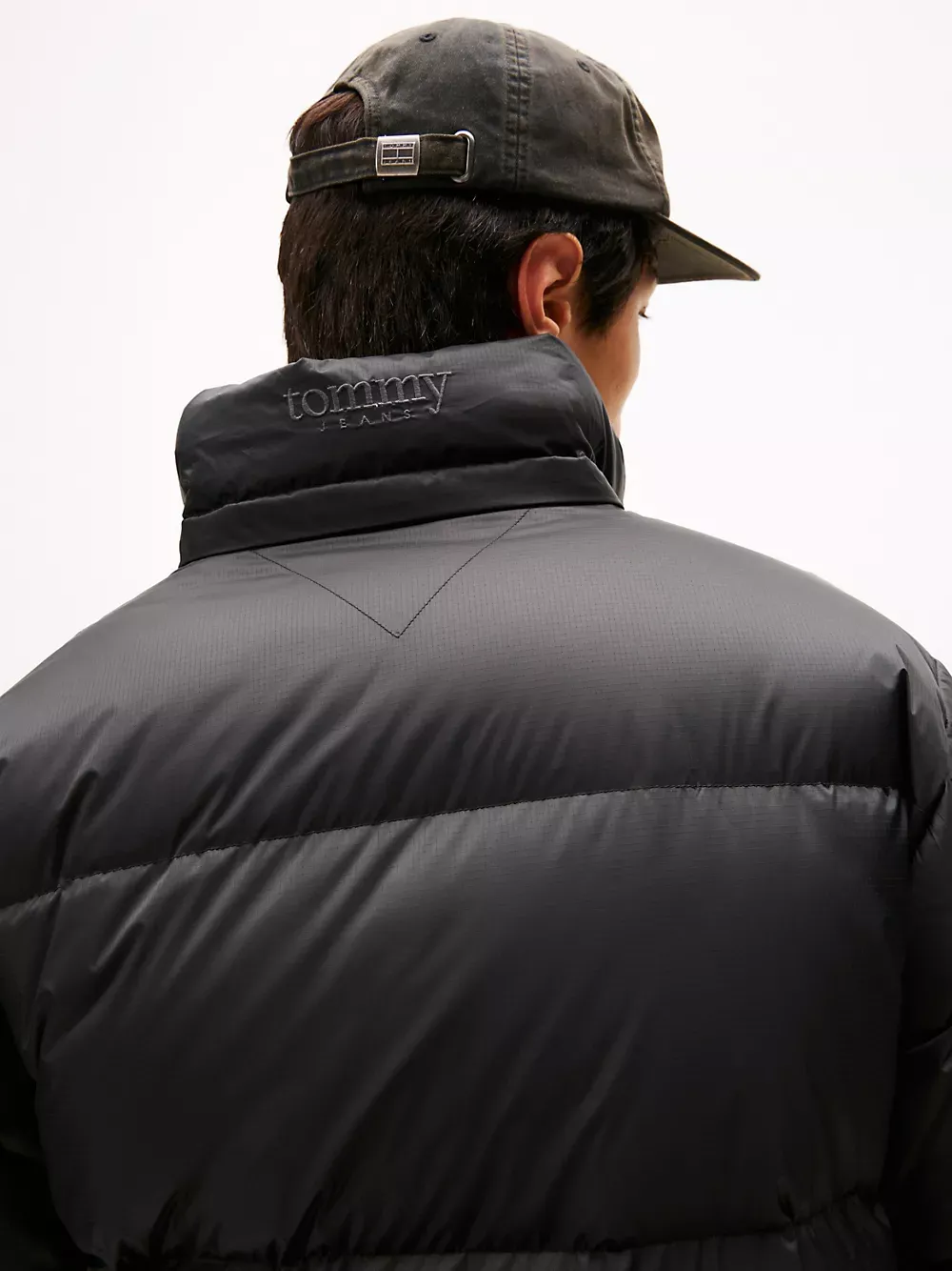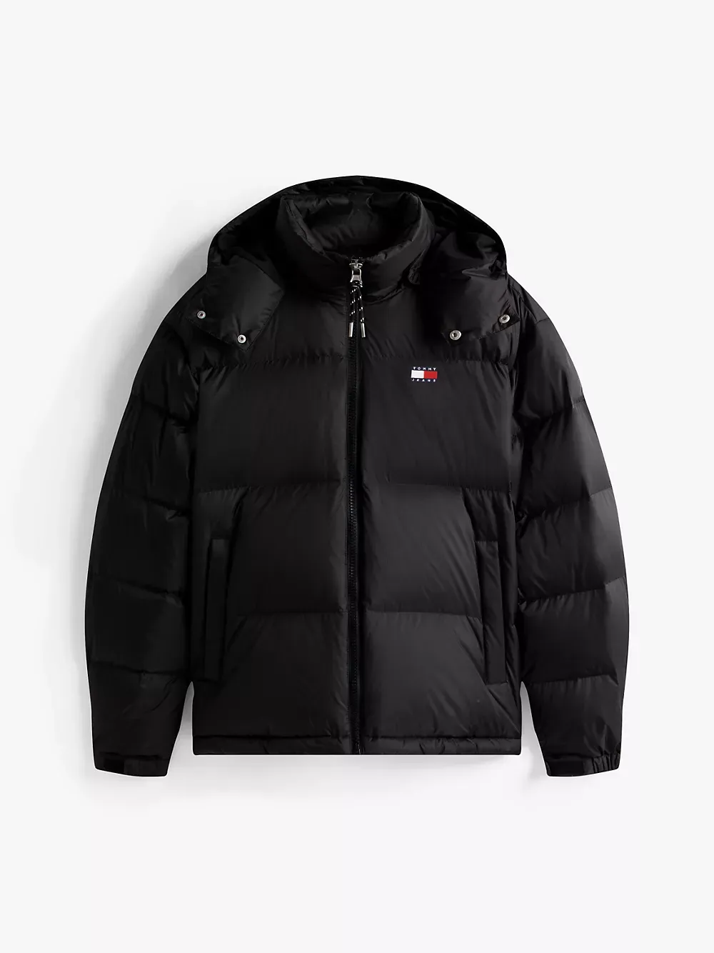 Tommy Hilfiger men's jacket. Made from durable ripstop and filled with down insulation, our hooded puffer resists snags and tears and delivers on warmth. Boasting these cold-weather credentials, it's the ideal companion for an outdoor winter adventure. Part of our Tommy Jeans collection.