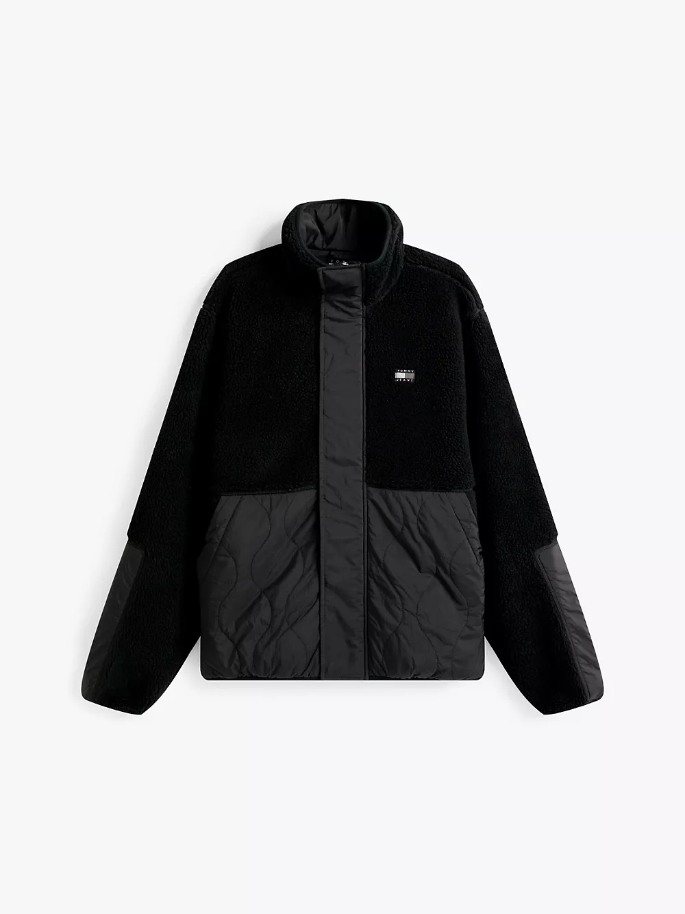 Tommy Hilfiger men's jacket. Ideal for the changing seasons, this relaxed-fit jacket combines a plush teddy finish with quilted panels for warmth when the temperature drops. Part of our Tommy Jeans collection.