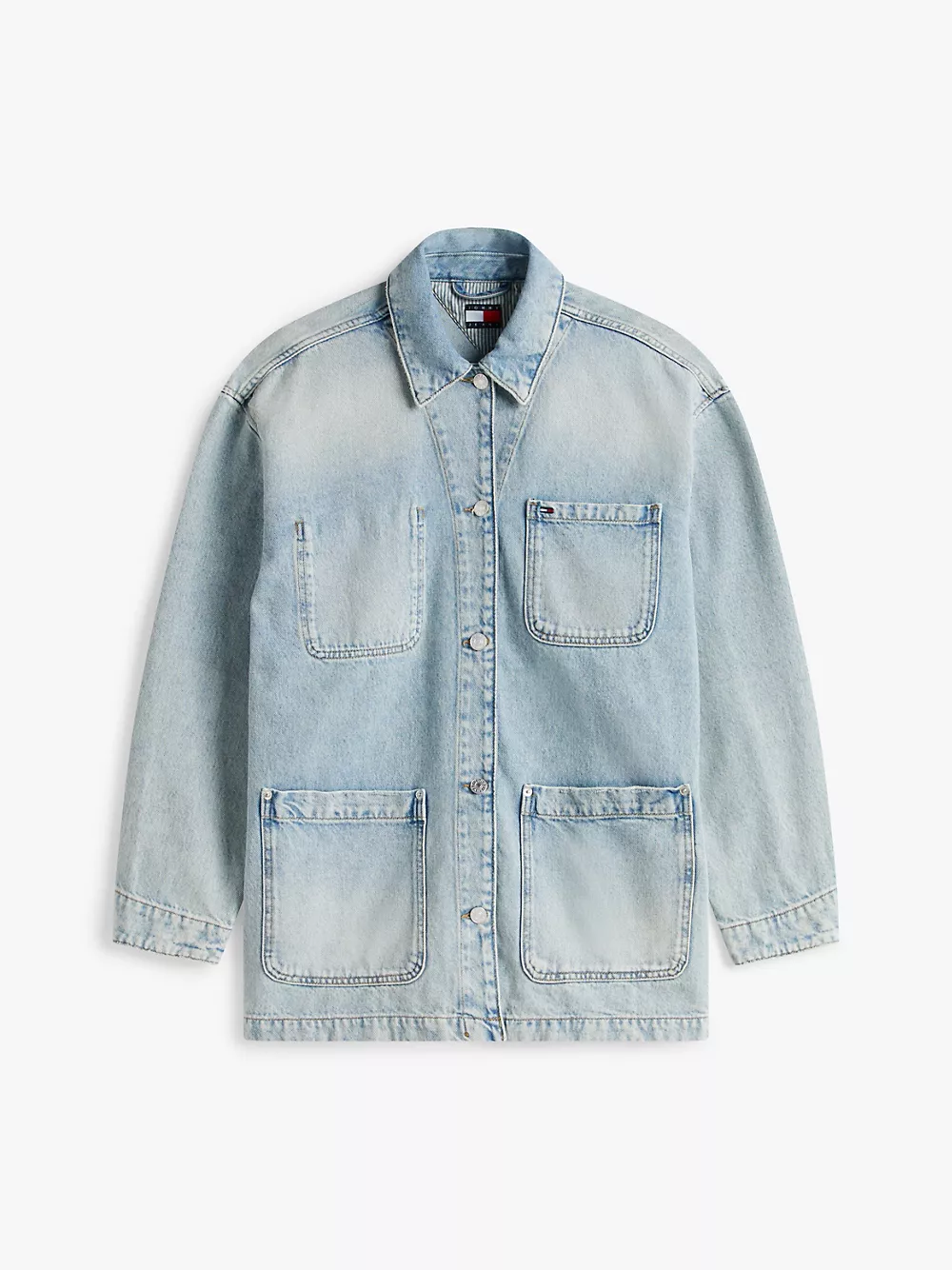 Tommy Hilfiger women's jacket. Give your denim rotation a retro refresh with this chore jacket, complete with all-over fading for a lived-in look. Part of our Tommy Jeans collection.