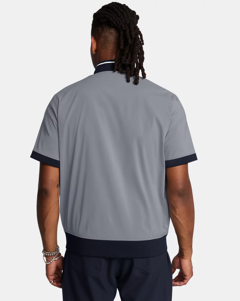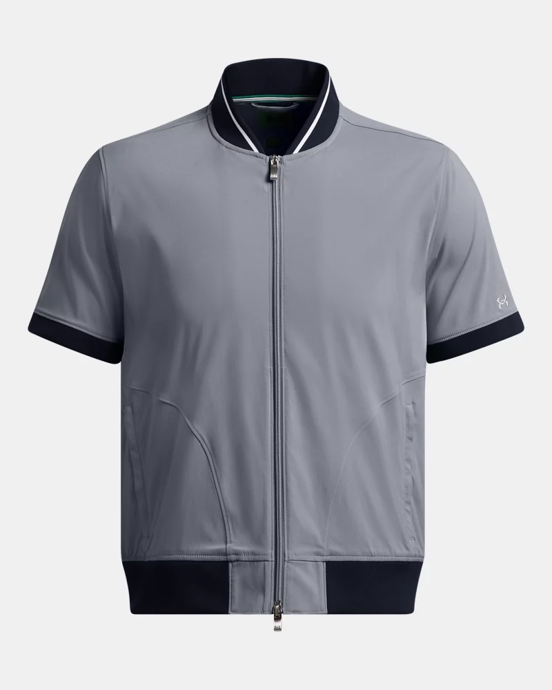 - Ribbed knit bomber-style collar, cuffs & bottom hem