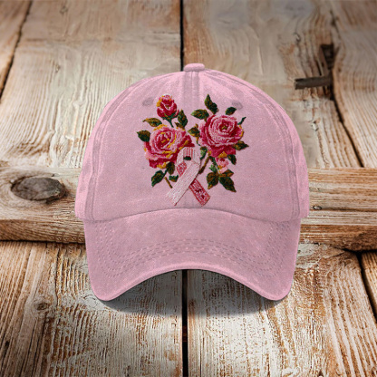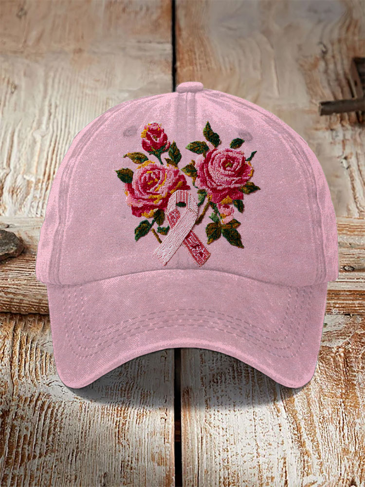 Unisex Retro Breast Cancer Awareness Floral Print Hat