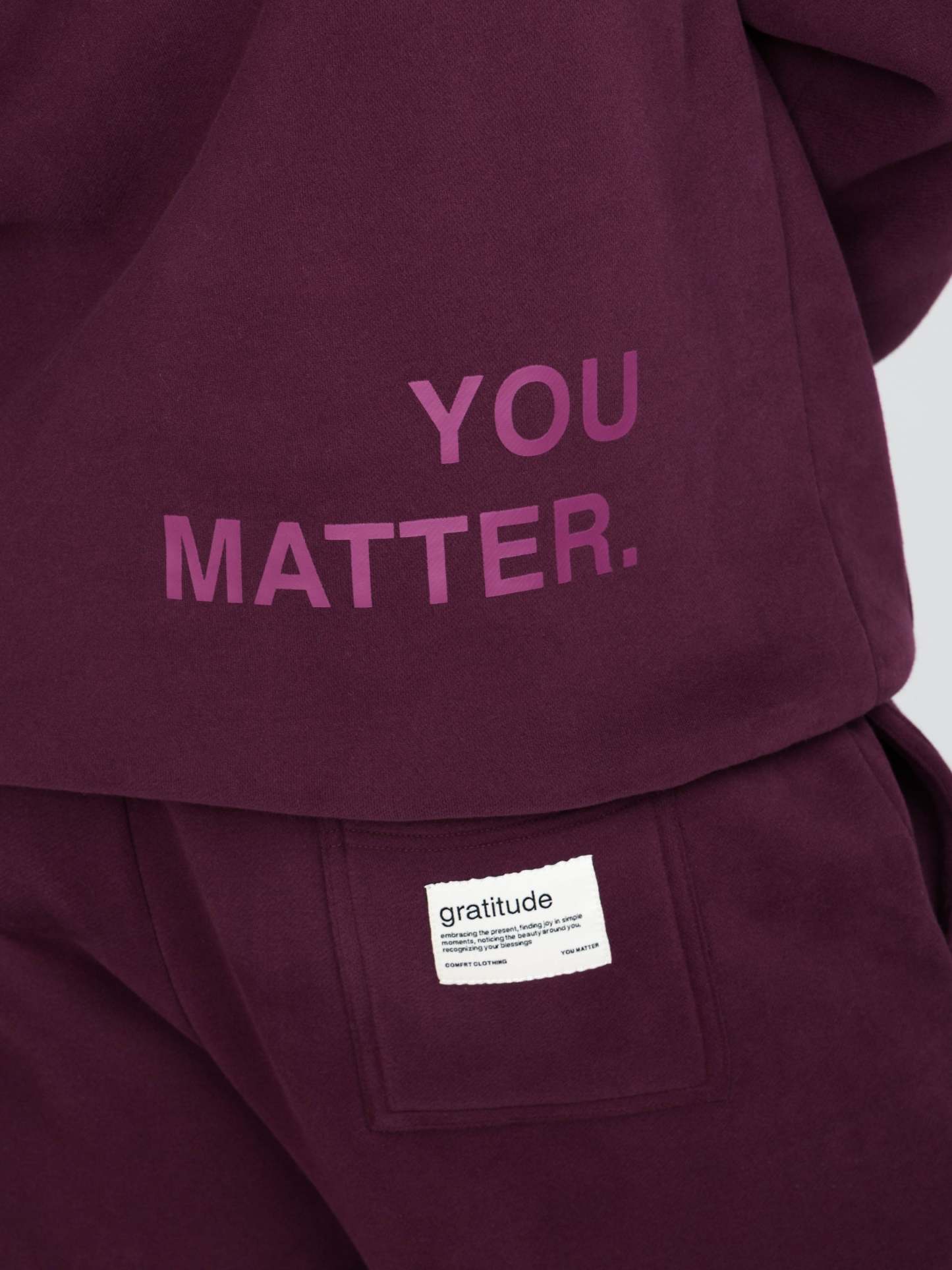A bold “You Matter” graphic on the back reinforces your worth, while a subtle Affirmation Label on the left sleeve acts as a daily reminder to be gentle with yourself—and that no matter what you're going through, you're going to be okay. Because the most important relationship is the one you have with yourself.